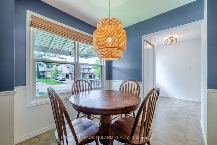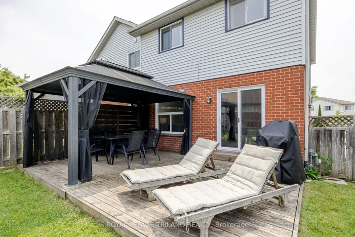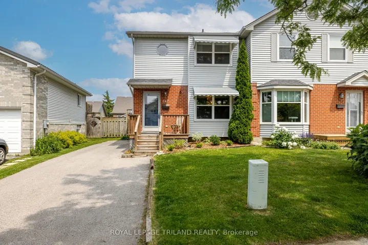 +"PublicRemarks": "Welcome to this charming 2-storey semi-detached home, ideally located on a quiet crescent in the sought-after Glen Cairn Woods neighbourhood. This move-in-ready gem offers a blend of style, function, and outdoor living - perfect for families, first-time buyers, or investors alike. The full brick façade on the main level and maintenance-free siding on the second floor provide timeless curb appeal. A long asphalt driveway (updated in 2020) accommodates three vehicles. Step up to the inviting front porch, and enter a bright main floor featuring a spacious eat-in kitchen with professionally repainted white cabinetry (2025), subway tile backsplash, and stainless steel appliances. The open-concept living/dining room at the rear of the home is ideal for entertaining, with direct access to the fully fenced backyard through an updated sliding patio door (2020). Outside, enjoy the expansive sundeck with included gazebo and a custom storage shed for added convenience. A stylish updated 2-piece bath completes the main floor. Upstairs, you'll find laminate flooring throughout three generous bedrooms, including an oversized primary retreat. The updated 4-piece bath features modern tilework, a glass tub surround, and an elevated vanity. The finished lower level offers a large rec room, updated 3-piece bath, and a spacious laundry/storage area. Major updates include: furnace & central air (2018), electrical panel, most windows, and more. Located just minutes from the 401, Victoria Hospital, parks, ponds, schools, and trails - this home is the perfect balance of comfort, convenience, and community. Don't miss it!"