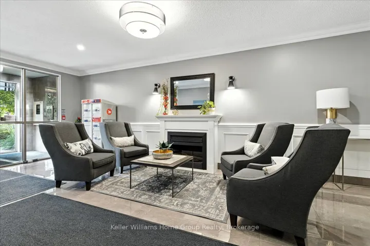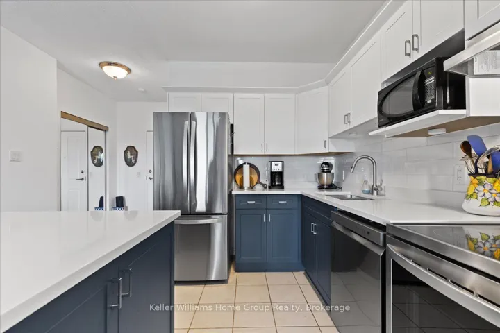 +"PublicRemarks": "Stylish Designer Condo at The Louvre in the Gallery. 2 Beds | 2 baths | 2 parking spots | Forest view patio Immaculate and move in ready, this beautifully updated condo offers style, comfort and convenience in one of Barrie's most desirable communities . Enjoy a spacious split-bedroom layout -- ideal for guests or shared living-- with 9 ft ceilings, new white Caesarstone countertops, luxury vinyl plank flooring (Sept. 2025), pot lights, California shutters and 5 1/2" baseboards for a fresh modern look. Both bedrooms are bright and generous with large windows and ample closets. The primary suite includes a private ensuite, while in-suite laundry adds everyday convenience. Relax on your private ground -level patio with serene forest views and fenced green space -- perfect for entertaining or pets. Includes two parking spots, a locker, and access to a rooftop patio. Just 2 minutes to Hwy 400 and close to shopping, transit, and local amenities, this home offers the perfect blend of modern living and natural tranquility--welcome to The Louvre at The Gallery."