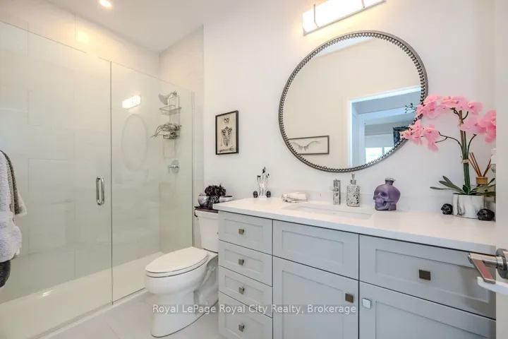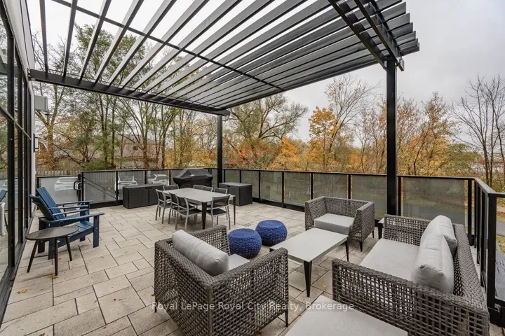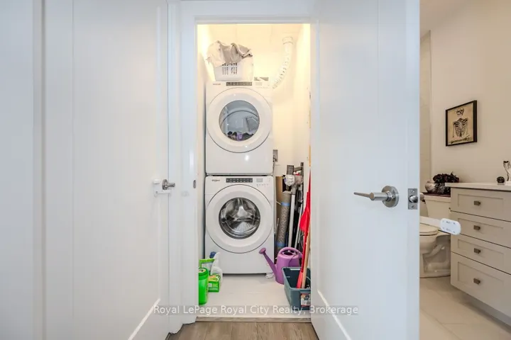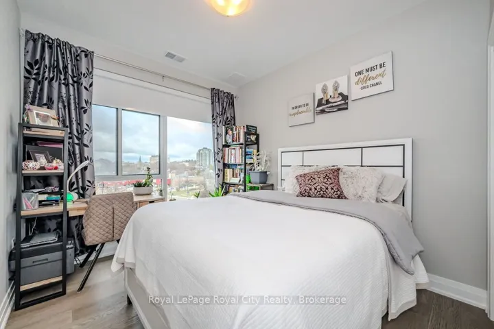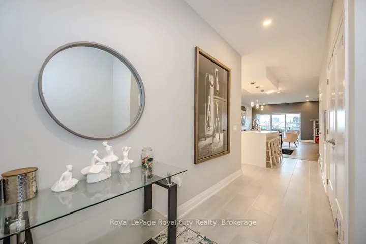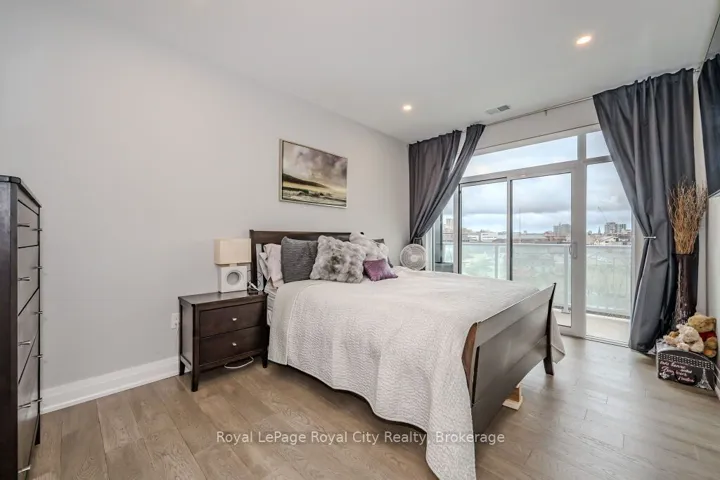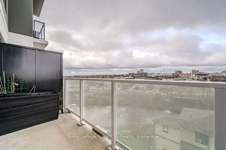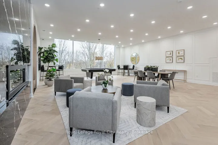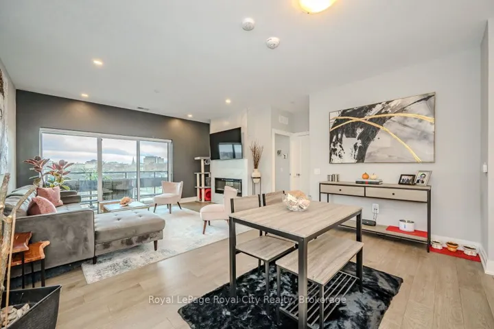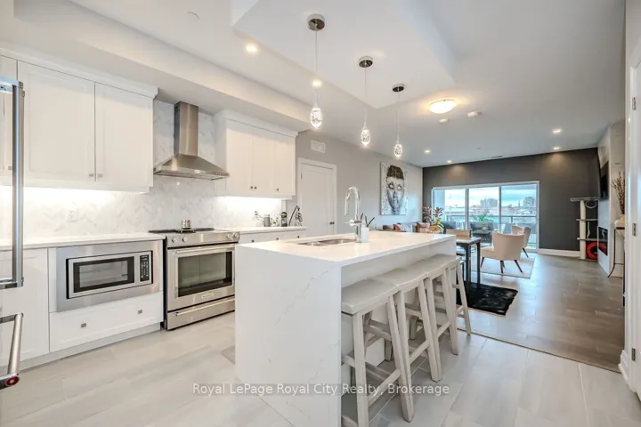 +"PublicRemarks": "Experience the pinnacle of luxury in Unit 608 at the stunning Edgewater Condominium, a truly exclusive residence ideally located at the picturesque junction of the Eramosa River in vibrant Downtown Guelph. This remarkable 2-bedroom, 2-bath residence redefines upscale condo living. Upon entering, you'll be greeted by a seamless blend of modern style and practical elegance. The unit features engineered hardwood flooring throughout the living area and all bedrooms, creating a warm yet sophisticated atmosphere. The gourmet chef's kitchen is a true highlight, boasting a spacious waterfall island, high-end appliances, a stylish backsplash, and sleek stone countertops. The open-concept layout effortlessly connects the kitchen with the living and dining areas, accentuated by an impressive floor-to-ceiling tiled fireplace and a walk-out to a private balcony showcasing breathtaking city views. The thoughtfully designed primary bedroom offers a serene retreat, a generous walk-in closet, a private balcony, and a luxurious 5-piece ensuite featuring a standalone tub, glass shower and heated flooring. The second bedroom is conveniently located near a chic 3-piece bath and laundry area. Large windows throughout the unit bathe the space in natural light, enhancing the calming neutral tones. Additional conveniences include one underground parking space, a storage locker, and access to outstanding building amenities like a library, elegant party and media rooms, a fully equipped fitness centre, and guest suites. Living at Edgewater means being surrounded by a vibrant downtown filled with boutique shopping and exquisite dining, alongside the peacefulness of nearby parks and rivers. With easy access to GO and VIA train stations, this location is ideal for relaxation and commuting. Seize the opportunity to make this luxurious condo your new home and join the privileged few who can call Edgewater their own."