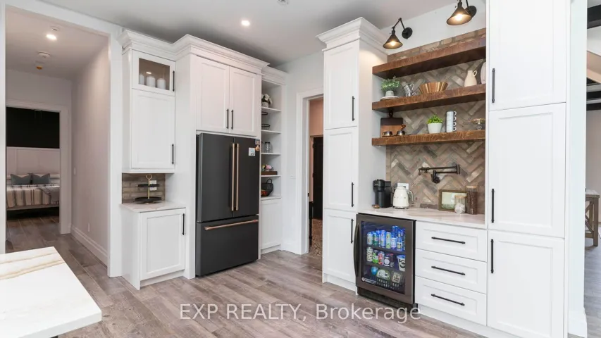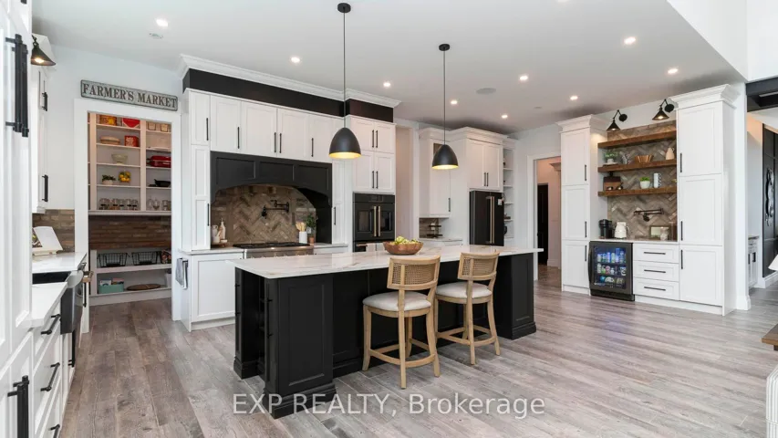 +"PublicRemarks": "There's something about life at Bella Lago Estates. It's not just the quiet cul-de-sac of 29 custom homes. It's the way the light hits the over-grouted stone facade, the curve of the concrete driveway, the elegance of garden walls and landscape lighting. Even the 3.5-car garage feels like a warm welcome home. Step through the keyless/fobbed double doors into a thoughtfully designed open-concept bungaloft. Heated floors span all three levels. A built-in sound system follows you from morning coffee to evening unwind. Every detail is curated for comfort, ease, and connection.The kitchen is both stylish and soulfully anchored by a grand island and opening to a 16-ft family room with custom built-ins and a brick fireplace. Mornings start at the island, evenings end with wine, laughter, and board games with family. Slide open the 14-ft patio doors and step into your backyard sanctuary. A stamped concrete terrace and pergola invite alfresco dining, while the saltwater pool sparkles against tranquil lake views. The cabana is lit for twilight swims. The fully fenced yard is freedom for kids, pets, and daydreams.The primary suite is a true retreat, with beamed cathedral ceilings, a cozy fireplace, patio access, and an ensuite that feels like a five-star spa with it's freestanding tub, double vanities, rain shower, and walk-in closet. Two more bedrooms with custom walk-ins, a polished office, and a mudroom with doggie shower complete the main floor. The walkout lower level offers a full gym, theatre area, wet bar, guest suite, bonus room, two baths, cold cellar, and ample storage. European windows, upgraded insulation, and a full security system complete this lifestyle-focused home. Bella Lago Estates isn't just a place to live, it's a place to belong. A home where elegance meets everyday. Where moments aren't just made, they're lived. Welcome home."