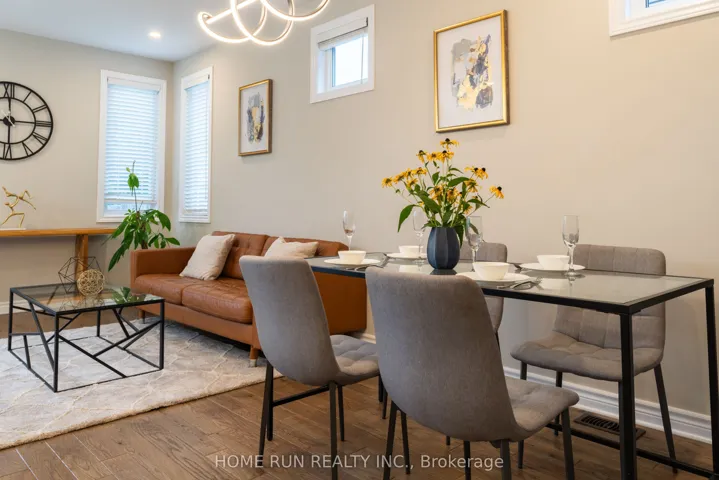+"PublicRemarks": "Welcome to this beautifully maintained townhouse offering 2,084 Sqft of modern living space in a highly desirable, family-friendly neighborhood. The open-concept main floor features hardwood flooring, a chefs kitchen with an oversized island, stainless steel appliances (including a brand-new dishwasher), and a walk-in pantry with exceptional storage. The spacious living and dining areas flow seamlessly, perfect for both everyday living and entertaining. Upstairs, you'll find three generous bedrooms, including a bright primary suite with a walk-in closet and stylish ensuite. A convenient laundry room and full bath complete the second floor. The finished basement offers a large recreation room and a two-piece bathroom ideal for movie nights, a playroom, or a home gym. Step outside to a fully fenced backyard with no direct rear neighbors, backing onto St. Benedict School. The yard provides both privacy and open views, with a quiet setting on evenings and weekends, making it ideal for family enjoyment. Perfectly located across from Wazoson Public School and minutes from parks, shopping, and transit, this home combines space, style, and an unbeatable location. Don't miss out on this fantastic opportunity!"