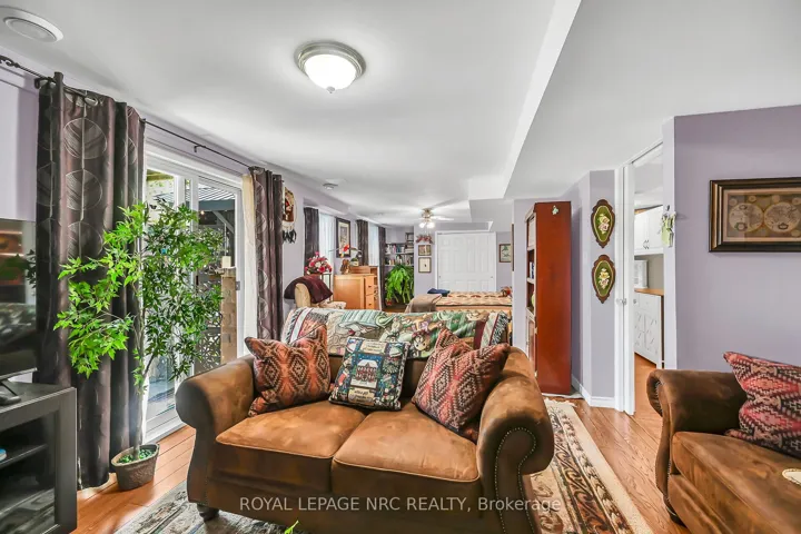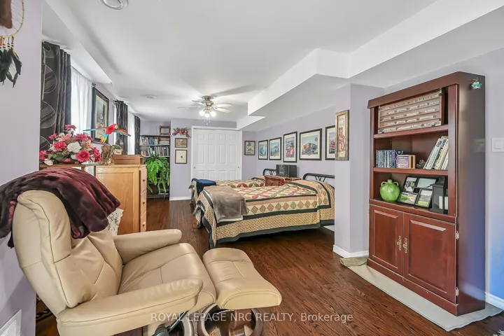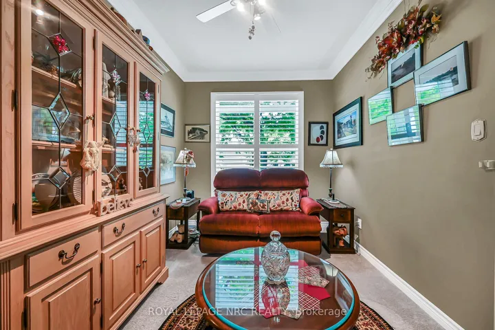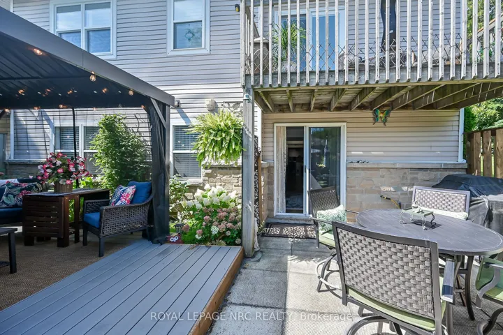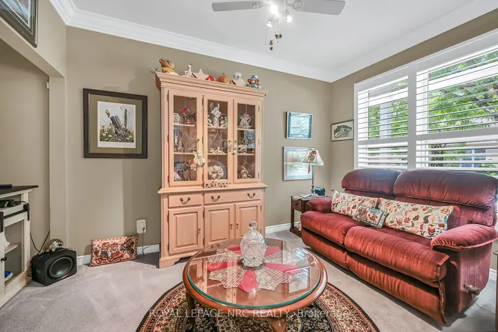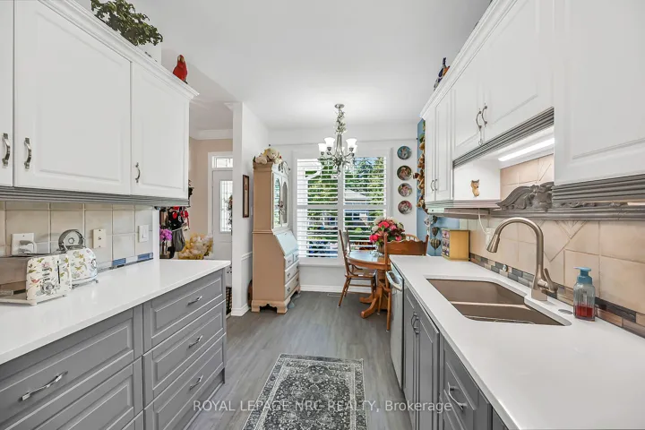 +"PublicRemarks": "This pristine end-unit bungalow townhome with a fully finished walk-out lower level is located in the desirable Meadowlands community of Ancaster. The property offers about 2,000 sqft of meticulously finished living space across both levels. Recent upgrades total over $50,000. The main floor features 9-ft ceilings, refined crown molding, and an inviting open concept design. There are 3 bedrooms, 2 full bathrooms, and main floor laundry near the bedrooms. The modern kitchen is equipped with upgraded cabinetry, a double sink with garburator, luxury vinyl plank flooring, quartz countertops, premium stainless-steel appliances, and a comfortable breakfast nook. The spacious dining area seats six and transitions seamlessly into the living room with patio doors accessing a balcony. The primary bedroom features ensuite privileges and a walk-in closet. The professionally finished basement includes a generous family room with patio door access to a fenced rear yard featuring vibrant gardens, patio, deck and gazebo, plus there is a gas barbecue hook-up. An additional bonus room provides versatile space for a craft room, workout area, or has potential for a future 2nd kitchen. A 3rd bedroom, home office area, coffee bar, and 3-piece bathroom complete the lower level and offer excellent accommodations for guests. Additional amenities include a private driveway, an attached garage with interior access, and ample visitor parking. Extras include enhanced wood trim, hardwood flooring in the living and dining rooms and hallways, updated carpeting in bedrooms, premium California shutters, a new high-efficiency furnace and water heater, central air, and newly installed shower and bathroom fixtures. The Condo Fee covers road maintenance, lawn care, and snow removal. Situated close to highway access, a golf course, restaurants, and amenities such as Costco and the movie theatre. This home blends comfort, style, and convenience. Ideal for people seeking a low maintenance lifestyle."