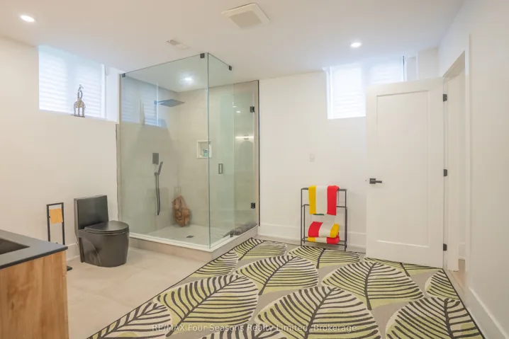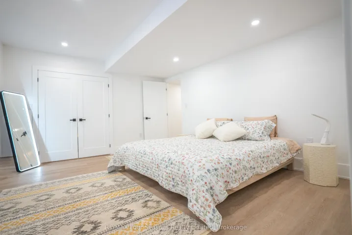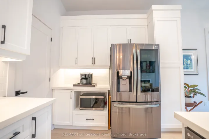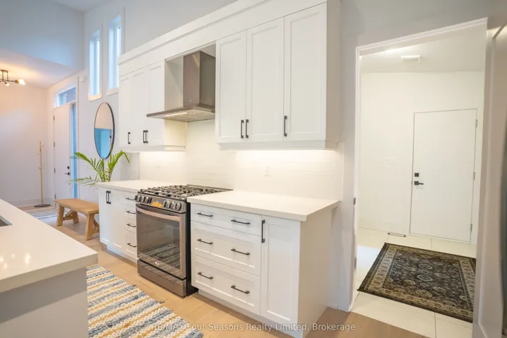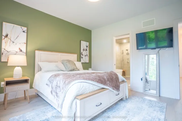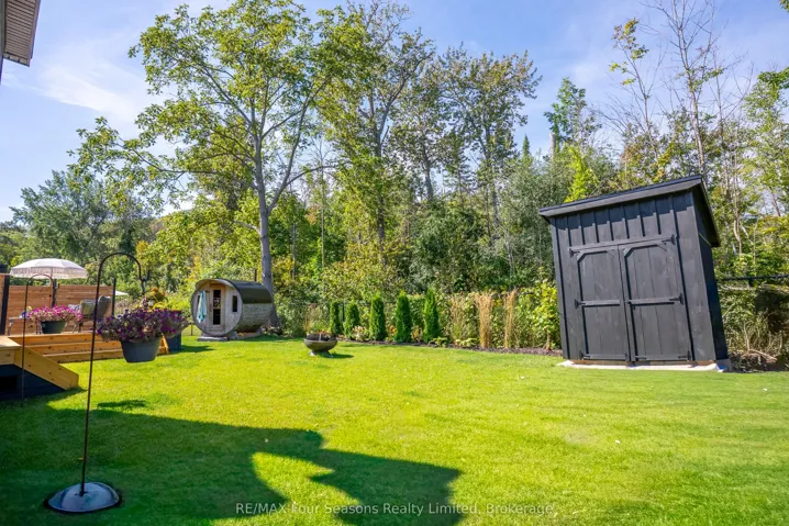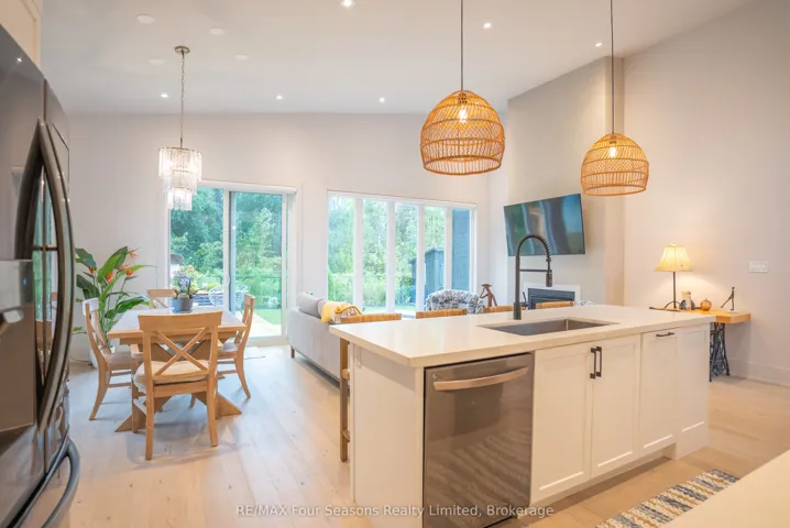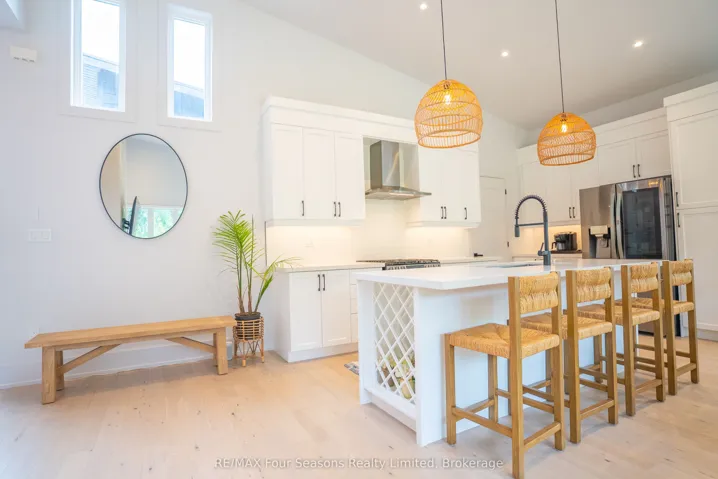 +"PublicRemarks": "Welcome to a beautifully designed bungalow that blends refined elegance with the ultimate outdoor lifestyle. Perfectly situated for easy access to nature, adventure, and the charm between Collingwood and Thornbury. This home is more than a residence, it's a statement in sophisticated living. Inside, white oak hardwood floors flow throughout the light-filled main level, highlighted by soaring vaulted ceilings and expansive windows that bring the outdoors in. The chef-inspired kitchen is both stylish and functional, featuring a sleek breakfast bar with stone countertops, a premium gas range, and top-tier appliances. Unwind in the serene main-floor primary suite, where tranquil forest views create a true retreat. The spa-like ensuite includes double sinks, a glass shower, and a deep soaker tub, perfect for relaxing after a day on the trails or slopes. A cozy gas fireplace with a custom Venetian plaster surround anchors the living space, ideal for quiet evenings or casual entertaining. The main level also features a bright second bedroom, a powder room, a well-appointed laundry area, and a mudroom with direct access to the heated double garage finished with R12 insulated doors and premium epoxy flooring, ideal for a home gym or workshop. The fully finished basement offers plenty of space for guests or extended family, with a large west-facing great room, a spacious third bedroom, and a full bath with double sinks and a glass shower. Outside, enjoy sunset views from your private, west-facing yard complete with a gorgeous deck, lush landscaping, modern storage shed, and a full irrigation system. A custom stone-surround driveway completes the picture. Just steps from a sandy beach and the Georgian Trail, this location is unbeatable. Bike into town for coffee and shopping, or explore nearby golf courses, wineries, and ski hills. This exceptional home offers the perfect balance of luxury, comfort, and location, a rare find in todays market."