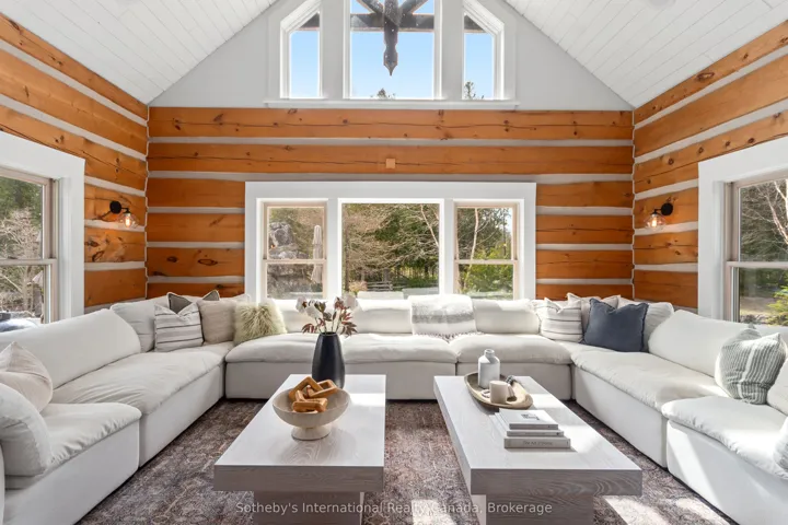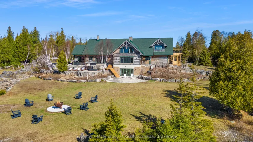 +"PublicRemarks": "Introducing The Estate on Michaels Bay, a rare 116-acre waterfront property on Manitoulin Island offering unmatched commercial potential. With 928 feet of shoreline on Lake Huron, this estate features a 9,000 sq ft log lodge, 3,000 sq ft guest house, 3,600 sq ft heated workshop, private lake, and a 2,500 ft air strip allowing direct access from Toronto in just 85 minutes by private plane. There is also a commercial airport with a 3,500 ft runway capable of handling executive jets just 40 minutes away from the property. The MS Chi-Cheemaun ferry from Tobermory to Manitoulin Island is 20 minutes away. Previously operated as a restaurant, the property is primed for revival as a destination dining venue or luxury hospitality experience. Its layout and amenities make it ideal for a corporate retreat, wellness resort, or boutique lodge. Development for a golf course was initiated, with fairways already cleared offering a head start for investors looking to complete and brand a signature course. The main residence boasts vaulted ceilings, radiant in-floor heating, a dramatic 4-sided stone fireplace, luxury kitchen, spa-like primary suite, and expansive entertainment spaces. The guest house includes 4 bedrooms and 2.5 baths, while the workshop offers oversized garage doors, EV charging, and an unfinished apartment. Backing onto 500+ acres of protected conservation land with hiking trails, this gated estate blends privacy, adventure, and upscale infrastructure. Whether reimagined as a resort, executive retreat, or legacy investment, this property delivers a once-in-a-lifetime opportunity to shape a premier destination in Northern Ontario. Manitoulin Island is the Largest Fresh Water Island in the World with stunning natural beauty, including beautiful waterfalls, sandy beaches, and numerous lakes and trails. It's a popular destination for camping, hiking, and stargazing, offering a tranquil escape into nature. The island is easily accessible by vehicle, airplane and boat."