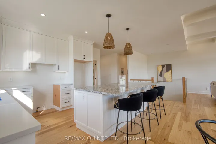 +"PublicRemarks": "This striking executive stone and stucco home offers scenic water views and is located in the desirable "Watermark on the Bay" community in Prince Edward County, just minutes from Belleville and close to trails, parks, vineyards, and the Bay of Quinte. Residents of this elegant enclave enjoy private access to a marsh-front walking trail along the shoreline. Built with energy-efficient Insulated Concrete Form (ICF) construction and a forced air electric heat pump, the home is designed for year-round comfort. Inside, you'll find wide-plank wood flooring, quartz countertops, quality cabinetry, and a striking granite island in the contemporary kitchen. The spacious layout includes a walk-in butlers pantry, a generous mudroom with laundry, and a beautifully appointed 5-piece ensuite. Outdoor living is just as impressive, with a covered front porch and a rear deck featuring glass railings. The bright and open lower level has drywalled walls and is ready for your finishing touch. An oversized attached garage nearly 1,000 sq. ft. offers high ceilings, large windows, and ample space for storage or hobbies. With municipal water, Bell Fibe Internet, and a premium location in one of the areas most exclusive neighbourhoods, this home delivers comfort, style, and lasting value."