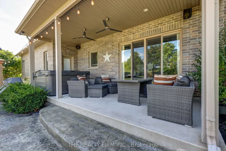+"PublicRemarks": "Welcome to your sanctuary of refined rural living at 22060 Nissouri Rd. Thorndale On. A breathtaking estate nestled on 1.33 acres spanning over 5,000 sq ft with exquisitely finished space. This majestic home features 4 + 1 bedrooms and 3.5 baths, crafted with thoughtful design and premium craftsmanship at every turn. Step through the stately entry into a 12' coffered-ceiling foyer with poplar custom trim flowing seamlessly into the family room with its soaring 13 vaulted ceiling and commanding floor-to-ceiling plaster gas fireplace. The kitchen, dazzles with maple cabinetry, a massive island with sink with reverse osmosis, a 6 burner gas stove, double wall ovens and luxe finishes like a travertine backsplash, Brizo faucets and Electrolux ICON fridge/freezer. The main level boasts 10 ceilings, 8 doors, hand scraped oak floors, Italian porcelain tile, granite throughout and an ambient speaker system all complemented by Hunter Douglas window treatments. A convenient main-floor laundry and custom drop zone add to daily ease. The lower level inspires with a stylish wet bar, wine fridge, additional bedroom, full bath, quartz and dual electric fireplaces, oak staircase, spray-foam insulation, separate garage access and a cold room. This property is ideal for multigenerational living with the separate lower level entrance, full amenities and expansive layout. Outside experience meticulously curated 360 landscaping and lighting, stamped concrete walkways and patios, a covered 10' x 25' patio with speakers, insulated attic & 2 extra circuits for a future sunroom addition. Completing the yard is a gas fire pit, a 20' x 22' shed with hydro, gazebo, backyard hydrant and a triple garage with an extra bay door to the back. Thorndale offers tranquility and vibrant community living with playgrounds, splash pad, skate park, sports courts and community gardens. A short drive to Londons premier shopping, business district & airport. The perfect blend of rural and urban charm"
