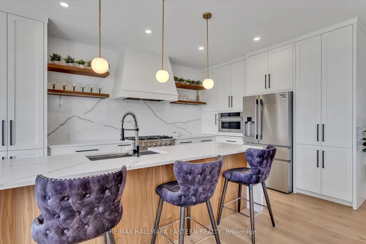 +"PublicRemarks": "Make this beautiful raised bungalow on a 1.3 acre private landscaped and fully fenced lot, with waterfront views your new home! On the shores of Pigeon Lake in the coveted Kawartha Lakes region and on the Trent Severn Waterway, the current owners have created a beautiful 4 bedroom, 3.5 bath retreat blending refined comfort with a relaxed, cool vibe. Soaked in natural light, the open-concept main level features rich hardwood floors, vaulted ceiling, contemporary gas stove, waterfront views, and a flowing layout designed for both everyday living and entertaining. The kitchen is a showstopper - sleek, spacious, and built for hosting with professional high-end stainless steel appliances, waterfall quartz island, counters and backsplash and custom cabinets. The primary suite is a tranquil retreat, with amazing water views, and an en-suite which will make your friends envious. Gorgeous 12 X 32 ft deck constructed with top quality composite material and glass paneling giving you unobstructed views across Pigeon Lake. Unwind in the fully finished walk-out basement modernized with Euro-style luxury vinyl chevron floors, leathered granite counters in the bar/kitchen, a propane stove, recreational area, large private bedroom overlooking the lake, a huge bathroom, office and a second laundry area, making this a perfect guest suite, or extra space for friends and family. Step outside to your private patio oasis complete with fire pit, hot tub and lake breezes, or enjoy sunset views from the elevated main-level deck. Your exclusive use dock awaits at the end of the property, and the sandbar is just moments away where you can swim all summer long. There's so much this home has to offer! Bobcaygeon village is less than 10 minutes by car and 1 hour to GTA."