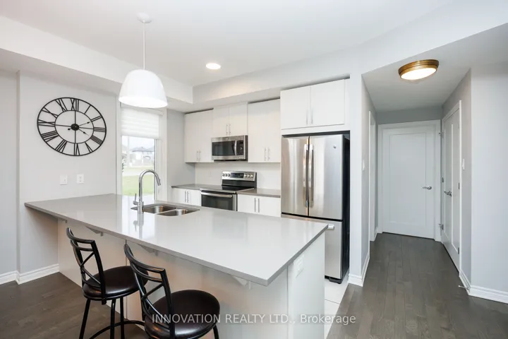 +"PublicRemarks": "Spacious and bright ground level end unit condo with 2 parking spots, 2 bedrooms, 2 bathrooms and a den! Have a dog? Walk out your patio door and go for a walk! Single parent? Security here with great schools in the area for kids to walk to. This EQ Cypress model offers 1200 square feet of modern living space with lots of natural light all day long from southwestern facing windows that still catch morning light. Spacious foyer with tile flooring and lots of storage space. Tasteful hardwood floors are through the open concept living space with access to your outdoor patio with immediate access to grass and walking - perfect for those with pets! Upgraded kitchen with quartz countertops, soft close cabinetry and stainless steel appliances. The primary bedroom offers Berber carpeting with a walk-in closet and 3 piece ensuite. The second bedroom also has Berber carpeting and is right next to the 4 piece main bath. The den also has hardwood flooring and is the perfect spot for an office and/or reading/media area. There are TWO parking spaces that come with this unit including one underground and one surface parking. Elevator access to underground parking spot. This unit also comes with a good sized storage locker and there is shared bike storage for the building as well. Located in Blackstone, adjacent to the amenities of both Kanata and Stittsville you can easily access grocery stores, retail, restaurants, Cardel Rec Centre, Goulbourn Lawn Bowling Club, biking and walking trails and more. Lovely!"