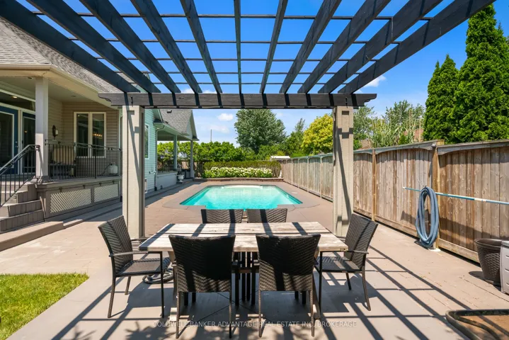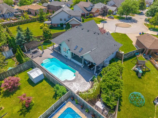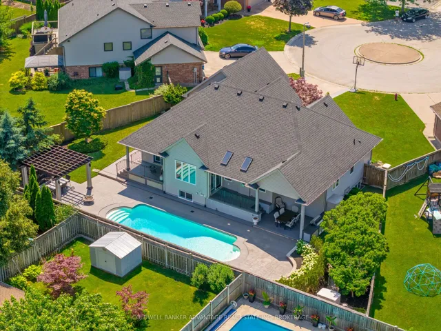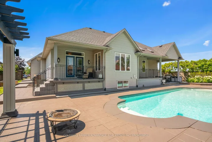 +"PublicRemarks": "Large Executive Bungalow situated at the end of a quiet Cul de Sac on extensively landscaped, private pie shaped lot on the Fonthill/Welland border. This fabulous family home provides close to 4000 sq ft of top quality finished space loaded with luxurious materials and upgrades including 9' and cathedral ceilings, hardwood floors, upgraded trim, 2 gas FP's, hard surface counters and in-line back up generator. 3+ 2 Bedrooms, including spacious Master w/ ensuite bath, his & her walk in closets & garden doors to private covered deck , 3 baths, formal Dining room & fully finished lower level with walk out / separate entrance, custom office suite, 2 additional bedrooms and amazing 600 sq ft Rec room/ entertainment room w/ gas FP, custom built in's & wet bar. The incredible backyard oasis features 3 covered decks, outdoor kitchen w/ b/i BBQ, I/G heated pool, synthetic turf putting green & custom built pergola ( pre-wired for hot tub ). Fabulous location in highly sought after North welland neighbourhood, close to schools, shops, Niagara College & Welland's recreation waterway & trails."