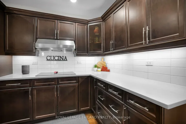 +"PublicRemarks": "Welcome to the sought after Victorian Model Penthouse at Wellington Park Condominiums, one of London's most prestigious addresses. Offering 1,888 sq. ft. of luxury living, this residence is ideally located in the heart of Richmond Row, steps to fine shops, restaurants, Victoria Park, the Grand Theatre, and only minutes to Western University, St. Joseph's & University Hospitals, and the Canada Life Sports and Entertainment Centre. Inside, you'll find a thoughtful dual-zone floor plan with two individually controlled furnaces/AC units, 2 bedrooms plus a spacious den, and a wealth of natural light. The primary suite features a 4-piece ensuite with heated floors, and a walk-in closet with built-ins and a door leading to a private north facing balcony. Both the large den and living room open to an expansive exclusive-use 600+ sq ft terrace with an awning, that offers breathtaking panoramic views of the downtown city scape and Old North, perfect for entertaining or enjoying spectacular sunsets. The custom designed chef's kitchen with a wall-oven stack and pantry, boasts an oversized island (8'2" x 6'4") with built-in dishwasher, granite sink, beverage centre, great lighting, and deep storage. A separate dining room with mirrored sliding doors adds style and lots of hidden storage. Additional highlights include: freshly painted (Sept 2025), a 2nd 3-piece bathroom, in-suite full-sized washer and dryer and oversized side-by-side underground parking (owned). The amenities include a fitness centre, party/media room, library, guest suite, and billiards lounge. Condo fees include; hydro, heat, A/C, water, garbage removal, and common space access. This luxury smoke and pet free condo is perfect for professionals or empty nesters seeking low maintenance luxury in a prime downtown location."