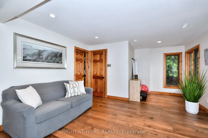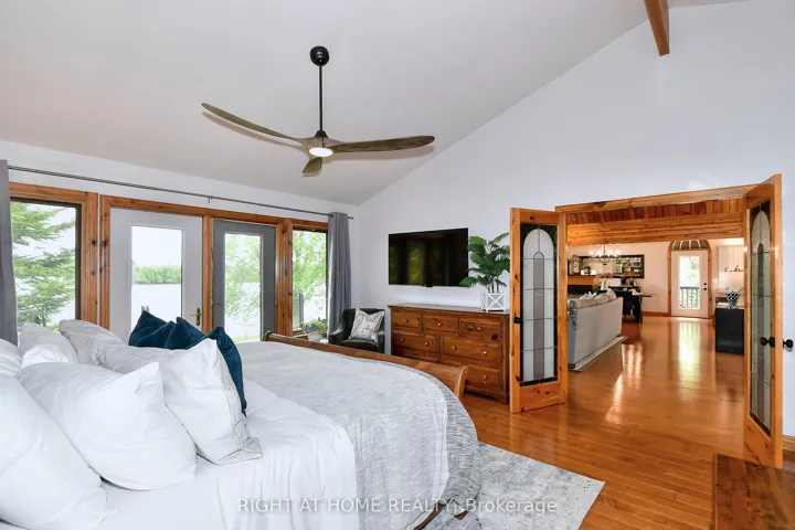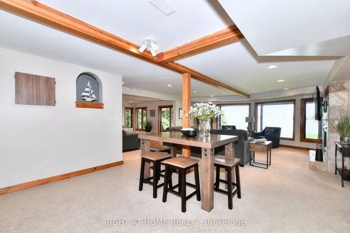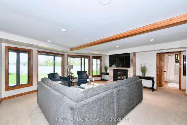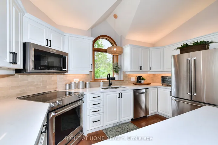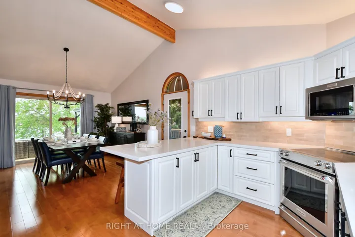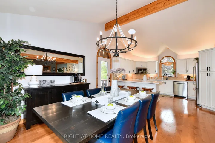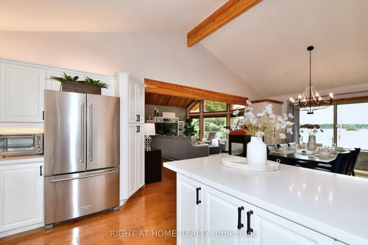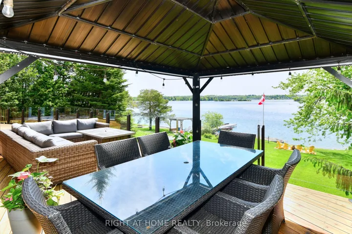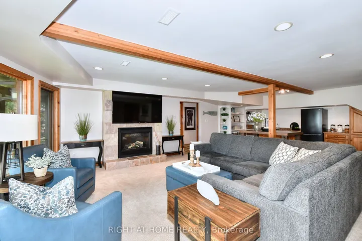 +"PublicRemarks": "Discover exceptional waterfront luxury in this custom-built Linwood Executive Bungalow, nestled on a quiet, municipally serviced cul-de-sac along the tranquil shores of Chemong Lake, part of the renowned Trent Severn Waterway. Offering over 2,930 sq ft of finished living space, this stunning 3 bedroom, 3 bath home is ideal as a year-round residence or upscale cottage retreat. Step inside to an open-concept design highlighted by a breathtaking great room with soaring 16 ft vaulted wood ceilings & dramatic windows that flood the space with natural light & showcase incredible panoramic lake vistas. A 3-sided gas fireplace adds warmth & ambiance, creating an inviting space for relaxation & entertaining. Extensive upgrades include a stylish updated kitchen feat. quartz countertops, tile backsplash, sleek white cabinetry & premium stainless steel appliances-truly a chefs dream. Warm hardwood floors, designer lighting & a neutral palette create a refined yet comfortable atmosphere throughout. The main floor primary suite boasts a spa-like ensuite bath with jetted tub & separate glass shower. Multiple walkouts from the kitchen, dining room & primary suite open to over 650 sq ft of cedar decking with glass railings, offering seamless indoor-outdoor living ideal for entertaining or enjoying serene lake views. The walkout lower level includes a spacious family room with wall-to-wall windows overlooking the lake, a wet bar, cozy gas fireplace, indoor sauna & 4 piece bath adjacent to two bedroomsperfect for guests. Professionally landscaped grounds feat. interlock stone patios, gardens, armour stone shoreline & a private sand beach for easy water access. Boating enthusiasts will appreciate the R & J lift-up dock, providing secure storage & access to Chemong, Buckhorn & Pigeon Lakes. This rare waterfront estate combines luxury, lifestyle, and location, just 10 mins to Bridgenorth, 15 mins to Peterborough & under 90 mins from GTA. Experience the very best of Kawartha Lakes living."