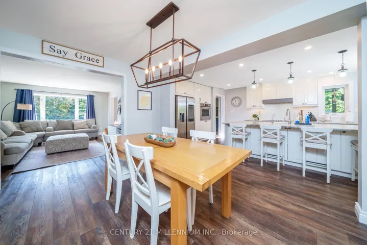 +"PublicRemarks": "Remarkable country home! Stunning private setting with a waterfall feature, pond, surrounded by Harwood forest. Large family home, with upgraded flooring throughout, newly renovated kitchen with induction cooktop, large centre island and eating area, open concept dining area overlooking kitchen with a large pantry area. Main floor family room with wood burning fireplace, large front living room, wrap around deck off kitchen, Huge great room with in floor heating, soaring ceiling, fireplace and loads of natural light, walkout to a stone patio with waterfall feature, outdoor fireplace, and a enclosed gazebo ...great for entertaining! 4 large bedrooms with renovated ensuite bath and 4pc bath, loft area over garage is perfect for home office or craft room. Unfinished w/o basement. Car enthusiast dream 3 garage with both heating and air conditioning!!! Large storage shed off garage. Fantastic fenced in backyard, with a pond (great for skating in the winter), separate detached single car garage. Large paved driveway with loads of parking. Generac Generator large enough to power whole house! Rogers High Speed internet service, and natural gas."
