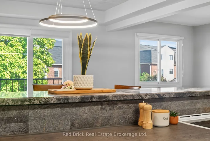 +"PublicRemarks": "Located in Guelphs vibrant and highly desirable South End, this extra-large 2-bedroom, 2-bathroom stacked townhouse offers over 1,300 sq. ft. of updated living space! Suite 221 features an excellent two-level layout, including two spacious bedrooms and convenient in-suite laundry on the second floor. Recent upgrades include a brand-new kitchen with new stove and dishwasher, as well as hardwood flooring throughout the main level. Both bathrooms have been beautifully renovated, showcasing stone undermount counters and a stunning ensuite on the upper floor. Janefield Place is a well-managed complex with historically low and stable condo fees so you wont have to worry about unexpected increases. Ideally located just steps from Stone Road Mall, parks, schools, and countless amenities, Suite 221 at 458 Janefield is the perfect opportunity for small families, first-time buyers, or investors."