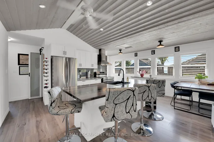 +"PublicRemarks": "Looking for your own little piece of paradise?? You need this beautiful Lake Erie Home! Exquisitely decorated open concept main living area with vaulted tongue & groove ceiling, two bedrooms, plus recently renovated three piece bath with gorgeous glass shower, wonderful spacious laundry room and pantry closet plus utility room. The main room features many bright lake facing windows, large kitchen island, cozy propane fireplace and tasteful modern flooring. California shutters finish off the windows perfectly. There are five different lake views from the front room, and your view out of the back is trees and fields. The rear yard feels like a resort with lots of decking, pergola, gazebo, fully fenced yard and many mature trees. A garden shed, plus a workshop in the back yard - both have electricity and the workshop is insulated - would not take much to heat it. Large asphalt parking area - room for 5 to 7 cars, plus an extra parking space on the other side of the driveway. Your new Lake Erie home includes a deeded right of way directly across the road - 10 ft wide, so access the beautiful waterfront. Heated and cooled by efficient heat pump system, plus a propane fireplace for chilly nights. 2000 gallon cistern (plus an additional cistern for watering flowers) and 2000 gallon holding tank. Great potential for short term rental in this area as well.. take advantage of the beautiful beaches, and the small town of Dunnville close by. Stop procrastinating - live the dream at the Lake!"