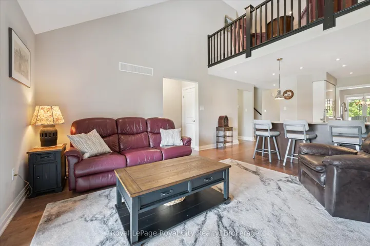 +"PublicRemarks": "This gorgeous and spacious executive bungaloft townhome in Centre Wellington is truly one of a kind. Built in 2017, this home provides an exceptional blend of luxury and functionality with over 2300 sq ft of living space. The main floor boasts an open-concept layout with a soaring vaulted ceiling in the living area. The large primary bedroom is a serene retreat, complete with an ensuite and a walk-in closet. A convenient main-floor laundry room adds to the ease of single-level living. Step outside from the living room onto the covered and upgraded composite deck, where you can enjoy the peaceful backdrop. The amazing loft level features a large family room, another spacious bedroom, and a full bathroom. The finished walkout lower level is an incredible bonus, offering a huge recreation room, another full bathroom, and workshop/storage space. The lower level walkout opens onto a private patio with a view of the serene greenspace and pond. This property stands out with its unique two-car garage, which includes a hobby mezzanine level AND a separate lower storage level which opens to the backyard as well. Located in a desirable south-end location, you are just minutes away from all the amenities you need and have the perfect commuting location. This is a truly special home that must be seen to be appreciated. Explore the online floorplans and virtual tour, and then book your private viewing today."