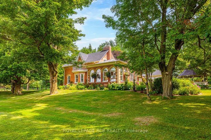 +"PublicRemarks": "This beautiful historic country retreat sits on 9.3 pristine acres of stunning formal gardens, wildflower meadows, natural woodland, ponds, Grand River frontage, a fenced fruit and raised vegetable gardens as well as manicured trails to enable full enjoyment of this tranquil paradise. The main house built in 1890 offers 3,817 sqft of meticulously and luxuriously renovated living space, including a stunning 4 season 600 sqft sunroom addition providing wonderful views across the gardens and countryside beyond. A separate coach house, divided into 2 apartments, provides an additional 1,585 sqft of accommodation for multi-generational living or revenue potential. A geothermal ground source heat pump provides optimal heating and cooling to the main house, with additional underfloor heating to tiled areas for that sumptuous touch during the colder months. High-efficiency wood burning fireplaces provide the finishing touch of home comfort luxury. Several outbuildings include a 1680 sqft 3 car garage with car lift, EV charger and an attached heated studio/workshop. A separate 1,150 sqft barn provides additional workshop and storage, whilst a converted silo with spiral staircase and a rooftop viewing platform is the ultimate spot for those sundowner cocktails amongst the treetops away from it all. All this just a few minutes from the quaint town of Grand Valley with all the essentials of daily life, 60 minutes to downtown Brampton, 60 minutes to Pearson and 15 minutes to Orangeville. Please see the attached feature sheet and video for all this stunning property has to offer. * Please note in Description and Measurement to separate the main house from the coach house I have used the words In Between and Ground as the floor levels*"