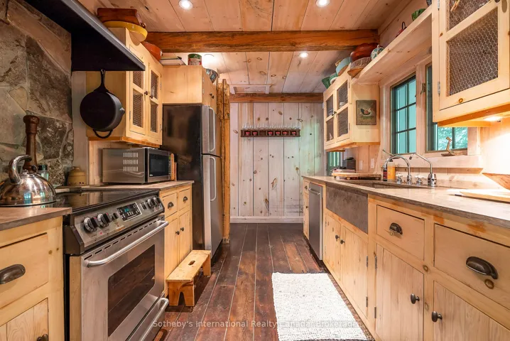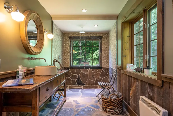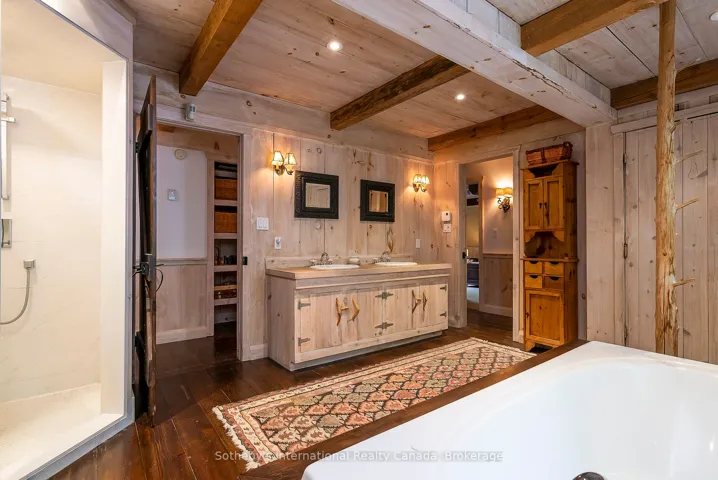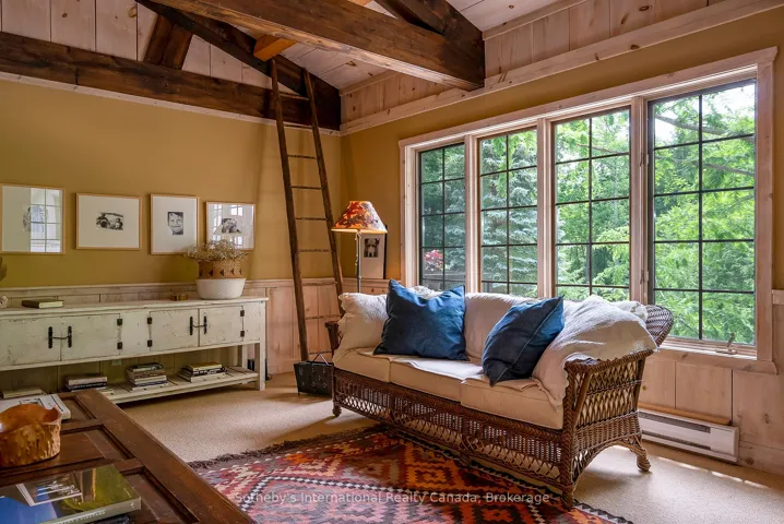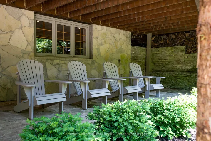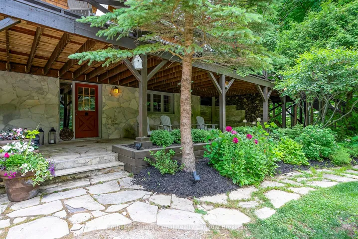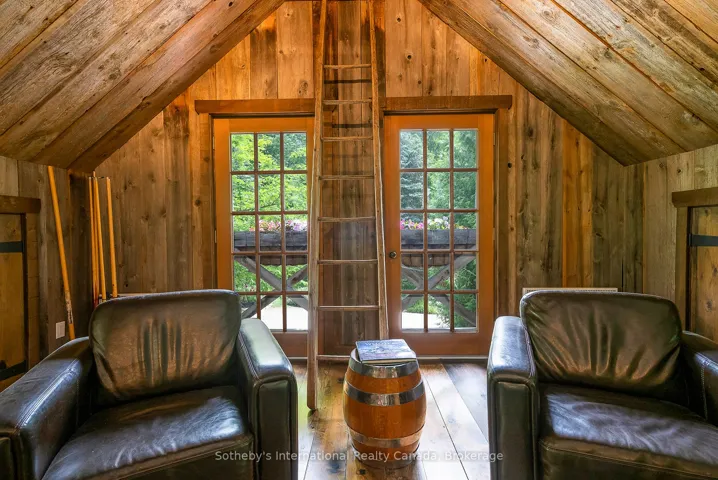 +"PublicRemarks": "Le Coin Perdu A Private 13-Acre Estate Retreat! Welcome to Le Coin Perdu, a rare sanctuary where timeless craftsmanship meets modern luxury living. Nestled on nearly 13 acres of former vineyard, this private estate offers trails, a managed forest with 300-500 new trees planted annually over 20 years, and a tranquil pond creating the ultimate retreat in nature.Step inside the custom-built residence completely renovated in 1998. Experience rustic elegance at its finest. Hand-hewn post-and-beam timber ceilings, flagstone and BC Pine flooring, and two dramatic stone fireplaces showcase authentic artistry with locally sourced stone and granite finishes. Oversized windows flood the home with light, framing views of lush greenery. The gourmet kitchen features a striking stone sink, stainless steel appliances, reverse osmosis water system, and a dining area with a solid wood table and wraparound banquette perfect for hosting family and friends.The spa-inspired bath offers a jet soaker tub, rainfall shower, and a cedar sauna for four. Outdoors, unwind in the hot tub beneath a canopy of trees, refresh in the outdoor shower, or relax on expansive wraparound decks. The private primary suite includes its own deck for sunset views. A detached 2-car garage built in 2006, crafted with vintage barn board and fieldstone, features a finished 30x40 loft with kitchenette, brass sink, pool table, TV lounge, and full field stone bathroom with open shower ideal for entertaining. Located minutes from Georgian Bays pristine shoreline, Meaford Harbour, premier golf, ski clubs, hiking, biking trails, and vibrant local markets, Le Coin Perdu offers an unmatched lifestyle of luxury, privacy, and adventure.This one-of-a-kind retreat blends European charm, rustic warmth, and modern amenities into a legacy property designed for those who value nature, comfort, and timeless beauty."