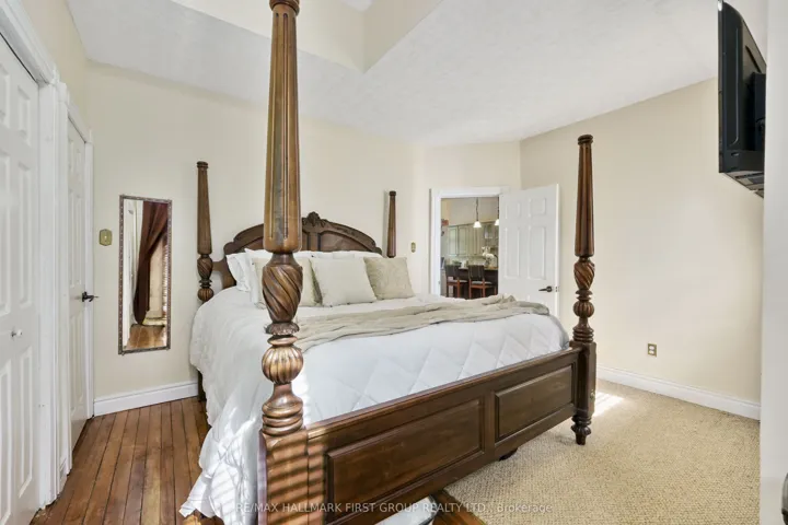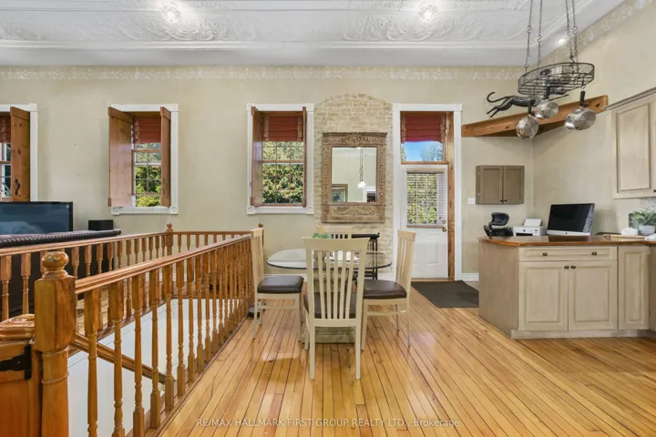 +"PublicRemarks": "Once a historic schoolhouse, now beautifully transformed into a one-of-a-kind residence, this home is filled with character and charm, built in the early 1900s and thoughtfully updated for modern living. This unique property features a finished lower level with a separate entrance, ideal for a home-based business, in-law suite, or private guest retreat, as well as a backyard oasis that feels like a world of its own. The open principal living space showcases soaring original hand-hammered tin ceilings that have been powder-coated white, creating an unforgettable statement. Sunlight streams through large windows with custom wood shutters, illuminating the spacious living and dining areas designed for effortless entertaining. The expansive eat-in kitchen features an island with a breakfast bar, pendant lighting, matching appliances, a tile backsplash, and a walkout to the back deck. A cozy breakfast area with exposed brick is the perfect spot for informal family meals. On the main floor, you'll find the primary suite complete with dual closets, a private walkout, and a bathroom. Downstairs, the updated lower level offers a large recreation room with recessed lighting, perfect for lounging or game nights. A spacious bedroom, office or guest bedroom, three-piece bathroom and a powder room, plus a laundry room, provide excellent flexibility for today's needs. The outdoor spaces are just as captivating. A welcoming front deck sets the tone for morning coffee, while the backyard unfolds into a true retreat. Enjoy summer afternoons by the pool with a deck surround, relax beneath mature trees (including fruit trees), or wander through vibrant gardens. A rustic gazebo by the koi pond invites quiet moments, and even a chicken coop adds to the charm of this remarkable property. Ideally located close to schools, amenities, and access to the 401, this home seamlessly blends timeless character with modern convenience, a rare find ready to be cherished."
