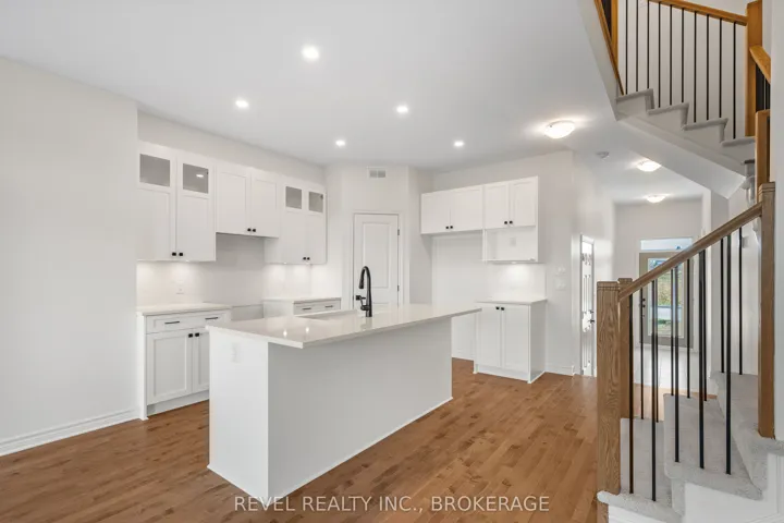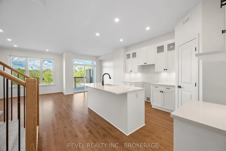+"PublicRemarks": "The Abbey offers 1,855 sq ft of stylish living in Kingstons west-end Woodhaven community. The main floor showcases maple hardwood, a modern kitchen with quartz counters, white shaker cabinetry, an upgraded sink, and a spacious walk-in pantry. A cozy gas fireplace anchors the living area. Upstairs, the primary suite includes a luxurious 4-piece ensuite with a freestanding tub and a walk-in tile-and-glass shower. The home also features a finished walkout basement with a rough-in for a future bathroom, giving you plenty of extra living space and flexibility. ENERGY STAR certified for efficiency, this home is close to the INVISTA Centre, Cataraqui Centre, a new elementary school, parks, and a planned 14-acre community park."