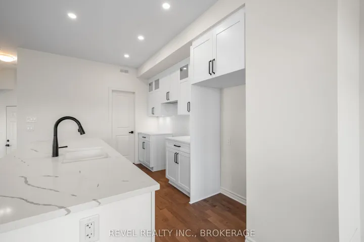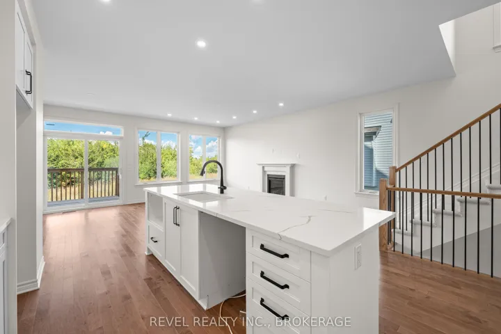 +"PublicRemarks": "Here is "The Camden", a move-in ready end-unit townhome offering 2,160 sq ft of finished living space in Kingstons northwest Woodhaven community. The main floor features maple hardwood, quartz countertops throughout, a bright kitchen with white shaker cabinetry, upgraded sink, and walk-in pantry, plus a cozy gas fireplace. The primary suite showcases a spa-like 4-piece ensuite with a freestanding tub and walk-in tile/glass shower. There is a partially finished basement, complete with a bathroom rough-in, provides versatile additional living space. This ENERGY STAR certified home is designed for comfort, style, and efficiency."