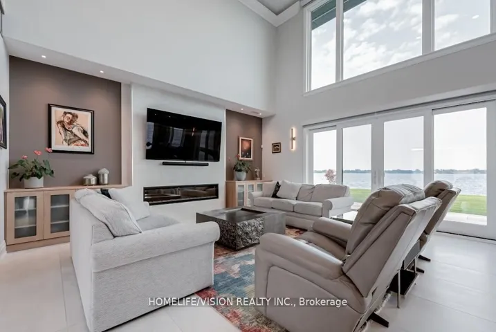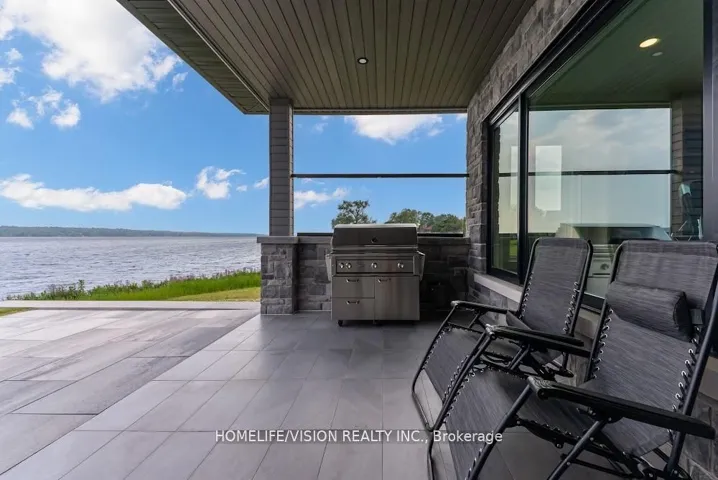+"PublicRemarks": "Bay of Quinte Beauty Set majestically on the tranquil shores of the Bay of Quinte, this extraordinary custom-built waterfront estate is a rare jewel in Bellevilles luxury market. Completed in 2023 and crafted with unparalleled attention to detail, this home reflects a legacy of craftsmanship, sophistication, and pride. Welcome to the property that redefines lakefront living in every sense. Architectural Elegance Meets Modern Comfort Privately set on a full acre of land, this 5,000 sq. ft. masterpiece boasts a full stone exterior, a commanding presence from the road, and panoramic lake views from nearly every principal room. The design is both impressive and inviting: an open-concept layout anchored by 19-foot ceilings in the great room, and floor-to-ceiling Anderson triple glaze windows that immerse the home in natural light and tranquil waterfront vistas. Luxury in Every Detail The home features four spacious bedrooms, including two upper-level suites with south-facing balconies overlooking the Bay of Quinte. A striking second-floor bridge way connects the east and west wings, creating a dramatic interior experience rarely found in private homes. Premium features include: Motorized, high-quality blinds throughout Electric fireplace10-foot ceilings on the main floor, and 9-foot ceilings upstairs Heated ceramic flooring on the main level Engineered maple hardwood floors on upper level Custom sauna, offering the perfect relaxation space year-round Custom closets and cabinetry throughout the house. Gourmet Kitchen & Entertainer's Dream The chefs kitchen is a work of art, outfitted with top-of-the-line Miele appliances including: Stainless steel fridge & freezer Induction cooktop Wall oven Combi- steam wall oven Dishwasher Vacuum sealing drawer for sous-vide cooking147x42 quartz topped island Quartz counter tops and backsplash MUST SEE !!!"