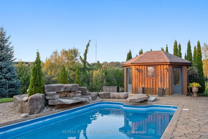+"PublicRemarks": "The Finest Country Estate in Northumberland County. Commanding 24 acres of rolling countryside with sweeping 360-degree views, this estate offers a rare combination of architectural mastery and natural beauty, just minutes north of Cobourg. Built with uncompromising craftsmanship, the 11,000 sq. ft. residence (7,500 sq. ft. above grade) blends timeless elegance with modern refinement. From the moment you arrive, the landscape sets the stage with meticulously groomed lawns, orchards, and stone installations by celebrated artisan John Shaw-Rimmington that create a sculpted canvas for outdoor living. At its heart, a resort-style pool framed by expansive stone terraces invites both grand entertaining and quiet retreat, while a private trail system winds through forested grounds to a hilltop lookout with panoramic views of Lake Ontario. Indoors, the residence impresses with a soaring great room 16-foot ceilings, marble columns, and a dramatic fireplace balanced by intimate spaces for everyday living. A Downsview-designed chefs kitchen, butlers pantry, and family room elevate both function and comfort. Seven bedrooms and six baths include a private 2-bedroom suite with it's own garage, while the primary retreat offers a dressing room, spa-inspired ensuite with heated floors, and sauna. Geothermal heating/cooling, an attached 3 car heated garage, a detached 2 car garage/shop and curated designer finishes complete this one-of-a-kind sanctuary. A true estate where architecture, landscape, and lifestyle converge at the highest level."