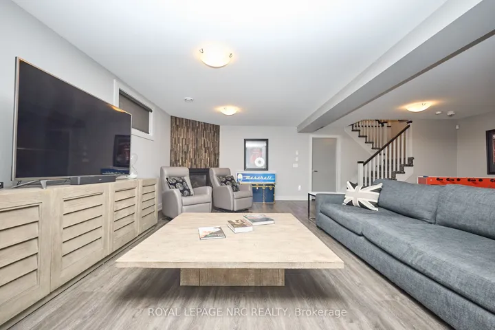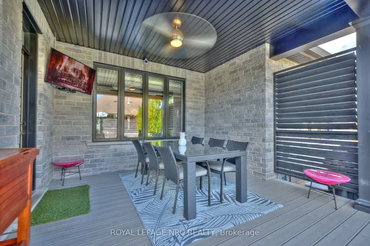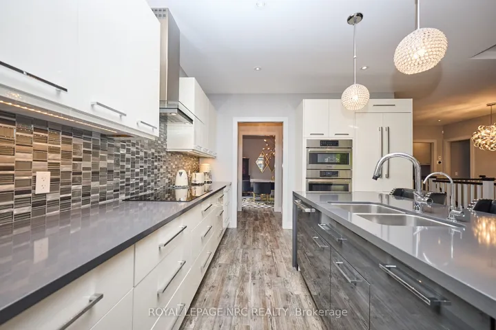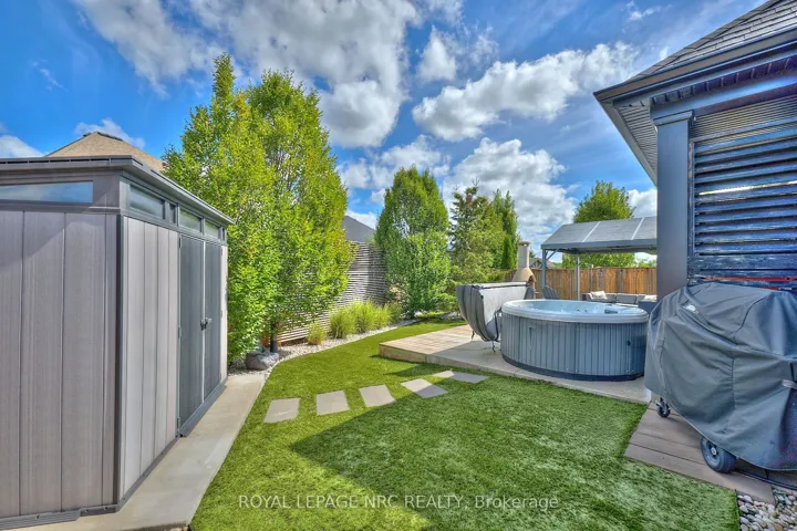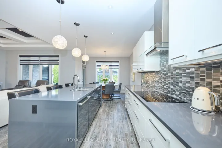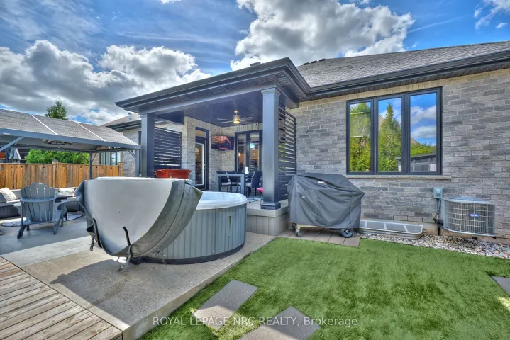 +"PublicRemarks": "OPPORTUNITY KNOCKS! Rinaldi-built former model bungalow aptly named 'The Remington' and perfectly positioned in Fonthill's Rosewood Estates where every home is a masterpiece of architectural design. From the moment you arrive, it captivates. A sweeping interlocking stone driveway curves through lush, professionally landscaped gardens, kept in flawless emerald perfection by a full irrigation system. The exteriors composition is bold yet gracefulstucco, brick, and stone harmoniously accented by sleek black-framed windows, contemporary glass-panel garage doors, and a rear covered composite deck that whispers of the beauty inside where every detail is a statement. Wood-grain tiled floors with sleek modern doors and trim with upgraded hardware. The open-concept design immediately draws you in to a living space anchored by a built-in floating entertainment unit and crowned with an elegant coffered ceiling suited equally for sophisticated gatherings or quiet evenings at home. The kitchen is a showpiece with gloss cabinetry, striking waterfall-edge quartz island & counters, a dedicated servery with built-in bar fridge, Bosch built-in appliances, and a butlers pantry that makes hosting effortless. The primary suite is pure indulgence: heated ensuite floors, a glass-tiled shower, an opulent soaker tub, dual quartz sinks, and a custom walk-in closet. Step outside to your outdoor paradise curated for relaxation and play. A private putting green invites you to perfect your short game. An outdoor pizza oven transforms al fresco dining into a nightly celebration. Low-maintenance turf ensures flawless greenery year-round and a covered deck extends the season for outdoor enjoyment. On clear nights, the starry sky becomes your personal canopy. When the evening turns cool, enjoy the fully finished lower-level recreation room with inviting gas fireplace, two extra bedrooms, a full 3-piece bath, and generous storage space. Welcome your next chapter here of unparalleled luxury living!"