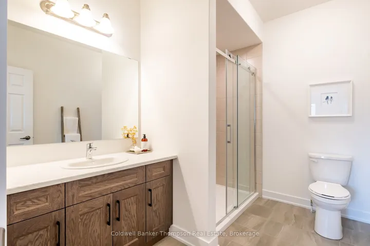 +"PublicRemarks": "Welcome to the sought-after Woodstream community, where Devonleigh Homes presents a new bungalow townhouse that perfectly blends comfort, style, and convenience, with no condo fees to worry about. Wrapped in a neutral exterior palette with a welcoming covered porch entry, this home offers immediate occupancy and a thoughtfully designed layout. Inside, the main floor opens to a bright and airy open-concept living, kitchen, and dining area, creating the perfect space for everyday living or entertaining. At the rear of the home, the primary suite provides a peaceful retreat with a 3-piece ensuite, while a second bedroom at the front of the home and a 4-piece guest bathroom accommodate family or visitors with ease. Enjoy the practicality of inside entry from the single car garage and a separate main-floor laundry room for added convenience.The living rooms sliding doors lead to a beautifully constructed deck with glass railings, ideal for relaxing or taking in the view. The lower level, with its unfinished walkout and 3-piece rough-in for a bathroom, offers endless possibilities for future living space. Thoughtfully upgraded throughout, this home includes builder-selected finishes such as a 60" ensuite shower with upgraded faucet system, stylish interior door hardware, flatstock trim, an enhanced kitchen layout with taller cabinetry, under-cabinet valence and lighting, elegant quartz countertops with tile backsplash, and upgraded cabinetry in both bathrooms. Hardwood flooring flows through the living and dining areas, complemented by upgraded railings and stain, and well-placed potlights for a polished, modern feel. With all these details already included in the price, this home offers a rare opportunity to move right in and enjoy a brand-new Devonleigh build tailored for today's lifestyle."