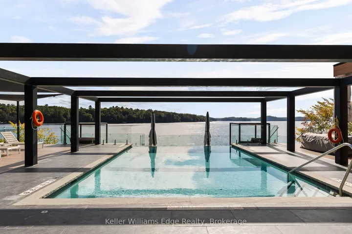 +"PublicRemarks": "Welcome to the exclusive 'Waterfront at Grandview' residences on Fairy Lake. Enjoy lakefront panoramic views from your private balcony, from inside the spacious and well laid out space, or enjoyed with friends and family from the exclusive rooftop patio. The exterior private amenities of this residence include a stunning infinity pool and patio with kitchen. Walk the well manicured grounds and you can enjoy your private lakefront sand beach access, lakeside fit pit, waterfront dock as well as private boat slips*. Inside the residence you'll have access to a gym, party room and use of a rental guest suite*. (*Subject to availability. See prop. mngr. for details) The condo itself has an excellent open floorplan with ample built in custom cabinetry. Modern design elements perfectly merge with the natural rustic surroundings. The large floor to ceiling windows in the main living area allow unimpeded views of the surrounding natural beauty. A BBQ with venting and lighting are built into your exclusive balcony without taking up valuable lounging space. Underground parking is equipped with an EV charger along with a large storage unit. Enjoy all that lakefront cottage country living has to offer without the hassle of maintaining a cottage!"