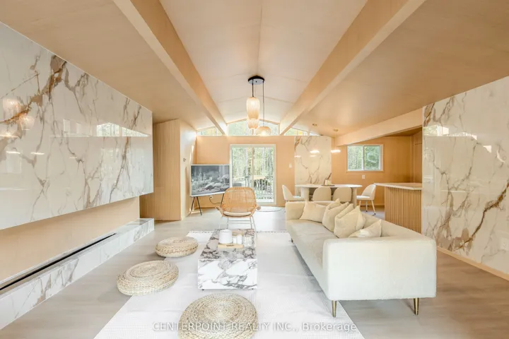 +"PublicRemarks": "Enjoy the peacefulness of the Muskoka River with an oversized lot offering 154 feet of frontage with private dock. The river is excellent for swimming, fishing, paddle sports and offers approximately 4 kms of boating. This top to bottom renovated 3 Bedroom, year round home with 3 washroom is located less than a ten minute drive to downtown Bracebridge with shopping, restaurants, amenities and events. Main floor has a spacious living room with newly installed pine floors, pine ceilings, unique fireplace and large windows, which allow for tons of natural light and views of the river. Laundry located on main floor along with three spacious Bedrooms. Relax in the hottub overlooking the forest behind you or enjoy an evening cocktail in the spacious screened in Muskoka Room. Springdale Shores is a great community with friendly neighbours and lots of privacy. Lower taxes than your traditional cottage properties and super fast high speed fibre internet for those buyers looking to work from home. The property offers a large garage with space for workshop and backyard is a gardeners canvas with built in flowerbeds ready for planting. The full height basement is bursting with potential with close to 900 extra square feet of space which could be utilized."