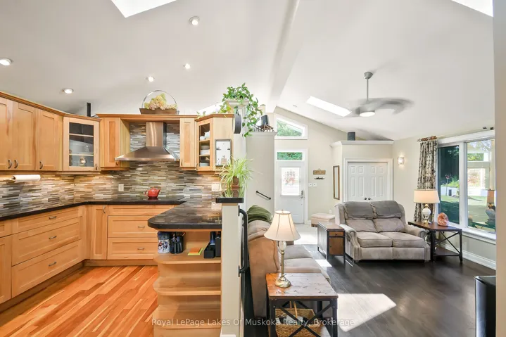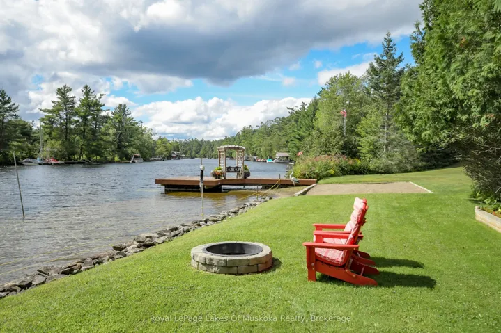+"PublicRemarks": "With 150 frontage accessing Lake Muskoka, a grandfathered boathouse, two docks, a fully renovated home and a guest bunkie you literally have everything that you could ever want in a Muskoka property! There is plenty of room for the whole family in a renovated home (1800 sq.ft.)+/- that boasts solid hardwood floors, large custom kitchen, granite counters with high-end appliances, PFA, CA, a stunning original stone wood burning fireplace and a recently renovated large primary suite with large custom walk-in closet, beautiful custom primary bath and walkout to the rear private hot tub retreat. The main 4 piece bath satisfies the needs of the second bedroom as well as any guests. The custom vaulted ceiling with six skylights provides natural light that adds an ambiance often enjoyed while overlooking the waters edge. Additionally the main floor offers an open, bright office. The lower level contains another bedroom, full bathroom, rec room with fireplace and a complete bar as well as an excellent storage room and full laundry room. The guest bunkie can host up to 6 people comfortably, has a 2-piece bath, propane fireplace and AC, so it is excellent for overflow guests year round. The grandfathered boathouse (2010) and two docks are positioned to offer full usage of your frontage that is level with its own beach giving ample room for enjoying every game the family wants to play. The detached oversized (900 sq.ft)+/- double garage has a 3rd garage door to the rear yard for ease of access. The property is fully landscaped and the circular driveway is newly paved. This is a location that is close to town yet just a quick ride to Lake Muskoka for all of the destination boating you could ask for."