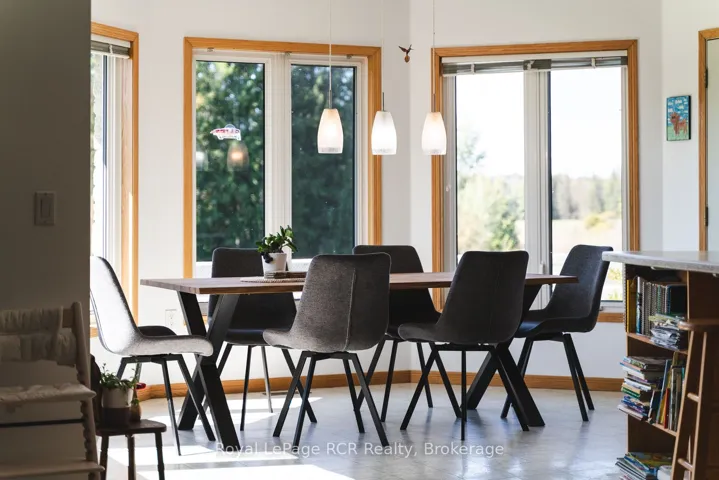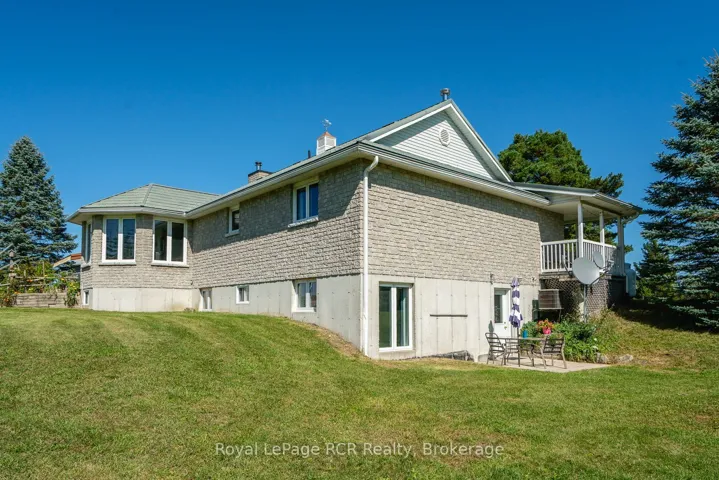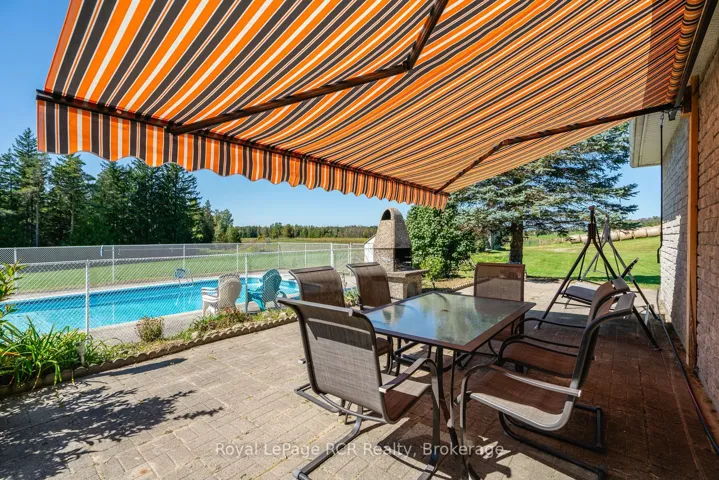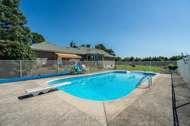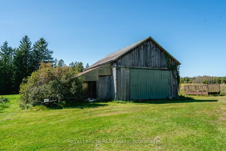 +"PublicRemarks": "Scenic 100+/- acre farm, organic for over 20 years, features a lovely stone bungalow, classic L-shaped bank barn, older shed, garage/workshop, and a private in-ground pool area. The Quality Home, built in 2000, boasts a covered wrap-around porch in a picturesque setting with double car garage and durable steel roof. Inside, the spacious layout includes a large eat-in kitchen with island and windowed nook capturing the views, a bright living room with wood fireplace, 3 bedrooms, full bath with cheater ensuite to the primary, laundry and 2-piece bath. The lower level has lots of storage, an office, walk-up to the garage, plus a 2-bedroom in-law suite with bathroom, living room, walkout to patio, and room for a kitchenette. Highlights include abundant windows, newer appliances, central vac and central air. Outdoors, enjoy the fenced in-ground pool with patio and retractable awning, perfect for gatherings. The bank barn is ideal for cattle and hay storage, plus there is a shed and garage/workshop. Mature trees, fenced pastures, and scenic fields complete this peaceful setting just minutes from town. Grey County lists the property at 100.14 acres while tax bill states 98.9 acres. Approximately 55 workable."