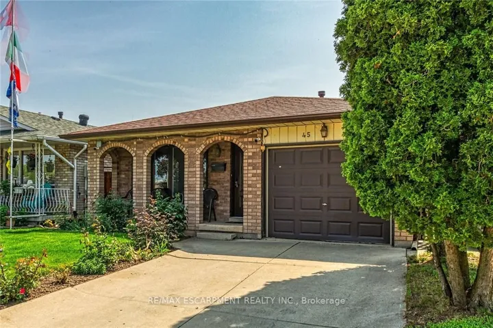 +"PublicRemarks": "Welcome to 45 Juniper Drive, Stoney Creek. This 4 level-back split is nestled in mature neighbourhood, steps to Orchard Park SS, major shopping, parks, hwy access and much more. Home is humongous and can accommodate small or large families. Upper level features 3 large bedrooms with hardwood flooring and full bathroom. Main level features huge living room with hardwood, eat-in kitchen, separate dining room and 2 separate entrances/exists. Lower level features extra large family room, bar section and 2nd full bathroom. Unspoiled basement awaits your personal touches to add even more living space. Beautiful backyard features patio section, garden and 2 sheds. Single car garage with inside entry, along with single car driveway. RSA."
