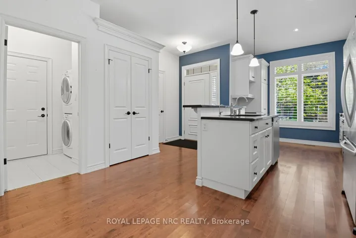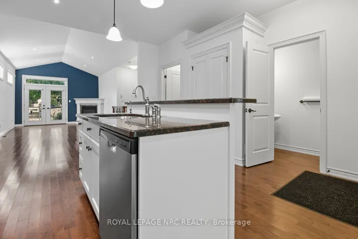 +"PublicRemarks": "Welcome to this stunning bungalow townhouse end unit in desirable north end St. Catharines, where convenience meets comfort. This home offers the ease of single floor living with a finished lower level, perfect for guests, a home office or extra living space. The main floor features rich hardwood floors and vaulted ceiling great room, creating a spacious and inviting atmosphere. The open concept living and dining area, complete with a cozy corner gas fireplace, ideal for family functions and entertaining. A two-piece powder room is also located on this level. The kitchen is a chef's dream boasting custom cabinetry, stone countertops, tile backsplash, under cabinet lighting, pantry, and a centre island with a counter bar area. It comes equipped with a stainless-steel gas stove, refrigerator, and dishwasher. Off the kitchen is the main floor laundry with stackable washer dryer and convenient access to the garage. Doors from the great room lead out to 10' x 9' raised deck. The main floor master suite provides a peaceful retreat with double closets, and 3pc ensuite with walk in shower. The finished lower level offers a generous family room, two additional bedrooms and den/office, and a 4 - piece bathroom. With a total of 1,800 square feet of finished living space, this home provides ample room for all your needs. Just a short walk from major shopping centres. Grass cutting and snow removal included, don't miss this opportunity to enjoy a care free lifestyle. Immediate occupancy. Call for your private showing now!"