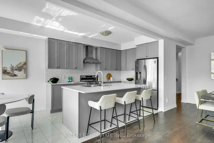 +"PublicRemarks": "Indulge in contemporary living with this elegantly designed freehold townhome, gracefully positioned in the sought-after, harmonious community of Huron South. This residence offers a seamless fusion of modern refinement and timeless grace. Tastefully enhanced with premium finishes, the main level features elevated ceilings and hardwood flooring that evoke an inviting ambiance. The kitchen showcases custom-designed cabinetry and a flush breakfast bar adorned with luxurious quartz countertops, blending functionality with sophisticated style. Spanning over 1,800 square feet of above-ground living space, this thoughtfully crafted home presents three generously sized bedrooms, and three impeccably finished full bathrooms. Complementing the expansive interior is a meticulously finished lower level offering over 400square feet of versatile space, the quintessential setting for a media lounge or executive workspace. With an exceptional balance of urban convenience and nature-infused tranquility, this residence promises an exceptional lifestyle in one of the regions most coveted enclaves."