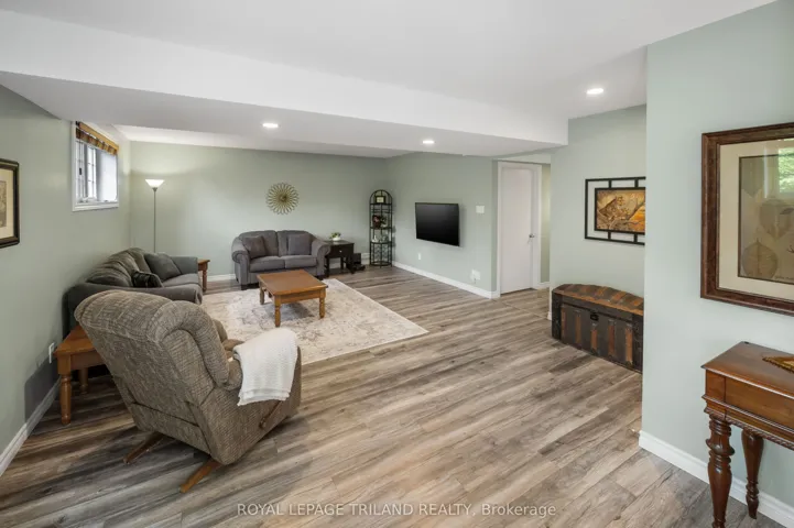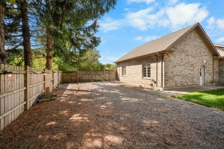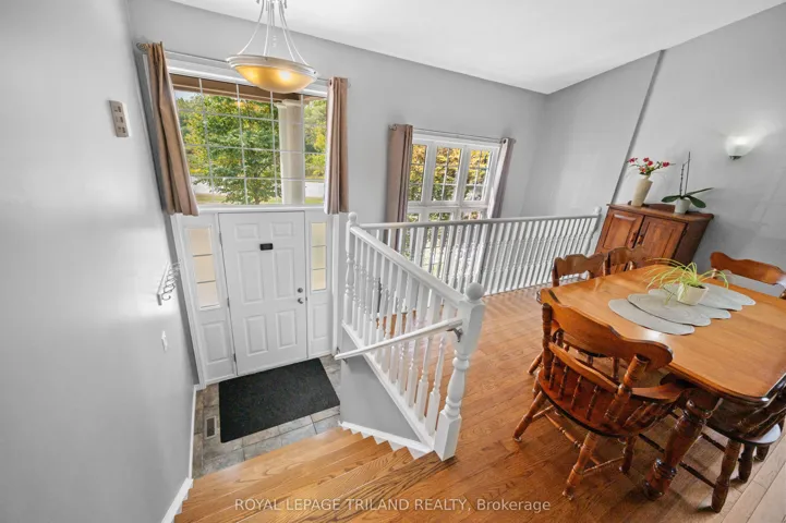 +"PublicRemarks": "This is the one! Just 10 minutes from London, this stunning acreage with Wallace Creek running through it features a beautiful 4 bedroom raised bungalow with an oversized garage that easily fits two large pickup trucks, plus outdoor parking for an RV, 45ft trailer, and more. Blending modern upgrades, thoughtful design, and expansive living, its amazing inside and out. The home is warm and inviting with vaulted ceilings, open-concept layout, oversized windows, and hickory hardwood floors. A dual sided gas fireplace connects the great room and gourmet kitchen, which boasts a 12 ft quartz island, abundant cabinetry, and casual dining. Patio doors open to a large two tier deck and private yard, ideal for seamless indoor / outdoor living. All bedrooms fit king beds and include closet organizers. The main floor features two bedrooms, including a primary suite with two walk-ins and a spa like bath with double sinks and walk-in shower. Laundry/mud room and powder room complete the floor for easy one level living. The fully finished lower level offers a huge family room, two more bedrooms, full bath with tub/shower/double sinks, and a versatile workshop (pre-wired and plumbed for second kitchen to easily convert for an in-law suite). Direct stairs connect to the oversized insulated garage, perfect for car enthusiasts or hobbyists. Meticulously maintained with a new roof (2016), furnace, AC, and UV air disinfectant system (2017), ultraviolet disinfectant system for water, plus updated doors, custom lighting, and modern finishes. Central vac, gas BBQ line, two sheds, and negotiable zero-turn mower and snowblower add convenience. The sprawling lot offers privacy and mature landscaping, with low maintenance perennial gardens and a peaceful creek that attracts herons, deer, turtles, foxes, and more, your own private retreat. Just 3 minutes to Hwy 401 and under 30 minutes to Ingersoll, Dorchester, St. Thomas, and Aylmer, this exceptional home wont last."