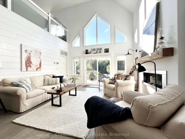 +"PublicRemarks": "Welcome to Silver Beach, Haliburton's Premier Lakeside Community! Discover refined cottage country living on Haliburton's renowned 5-lake chain. Built in 2018, this exquisite home is comprised of 3,165 sq. ft. of finished living space, one of the largest in the development, & offers the perfect blend of modern luxury, low-maintenance living, & a true 4-season lifestyle. Step inside to an open-concept main level where cathedral ceilings, a propane fireplace, & a dramatic wall of windows frame serene pond, forest & sunset views. The chef's kitchen is equipped with quartz counters, a breakfast bar, & s/s appliances.. A spacious dining area flows seamlessly to the great room & out to the large deck. The main floor also features a foyer, a powder room, & the primary suite with laundry, walk-in closet, ensuite bath, & walkout to the deck. Upstairs, a striking glass-railed loft overlooks the main living space. There are 2 bdrms, one very generously sized & one with direct access to the luxurious, upper level, spa like bath with soaker tub & walk-in shower. The finished lower level extends the living space with a large family room, large guest bdrm, full bath, & ample storage. An attached 2 car garage adds convenience. Premium amenities at Silver Beach include a clubhouse with Grand Hall for organized activities/events, a fitness centre, a games room, & a guest suite for visitors, forested trails that adjoin Pinestone Golf Course, 2 sand beaches within a few min walk, & docking facilities where you can dive right in, or purchase a slip (avail for $23,500) allowing you to boat across sparkling waters & enjoy endless water based activities. Dock maintenance, snow removal, grass cutting, town sewers, community water treatment, & a level 2 EV charger all add to convenience. Located just minutes from golf, dining, health care, & the town of Haliburton, this property offers comfort, community, & convenience in one of cottage country's most desirable settings!"