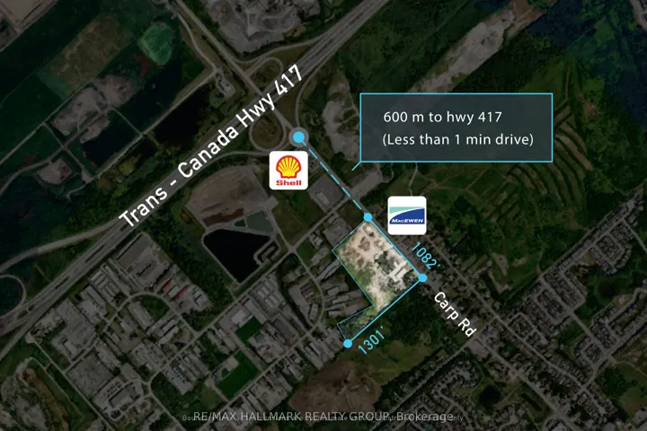 +"CrossStreet": "From highway 417 take exit 144 for Ottawa 5 toward Ch Carp Rd/Stittsville/Carp heading south. Property on right."