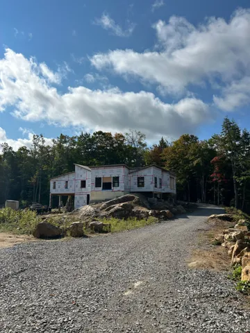 +"PublicRemarks": "New, under construction spacious 3,150 SF custom bungalow with 4 bedrooms, 3.5 bathrooms, on 10.34 acres. This home is built on solid bedrock & powered by wind and solar. Kitchen and bathroom walls & floors are Italian porcelain slabs. Large kitchen has Italian cabinets, Miele appliances, Italian designer fixtures with walkout to a deck on one side and a 480 SF courtyard on the other. Quality Italian engineered white oak flooring with inlays, high sloped ceilings, large windows & doors, 3-way fireplace with gold leaf imprinted porcelain, wrap around deck, media room, Douglas fir ceilings and a lap pool/ spa combo in the courtyard offer you luxurious surroundings. Radian heating with HRV system, pellet stove with silver leaf imprinted porcelain, split air conditioning, and polyurethane closed cell spray foam insulation to keep you warm or cool. Bedroom 1 & 2 have 8 FT closets. Bedroom 3 has 12 FT closet, 4 pc bathroom. Primary bedroom with a large ensuite w/ steam shower, 6 ft deep bathtub, his and hers vanities and wash basin. Primary 8' x 12' bath offers and oversized tub, 4' x 4' shower, 8' vanity with double sinks. Long winding treed drive and pond. Standing seam metal roof with cedar soffit & facia. Well is 157' deep well supplying 30 gal / minute. This is a must see great new home with privacy."