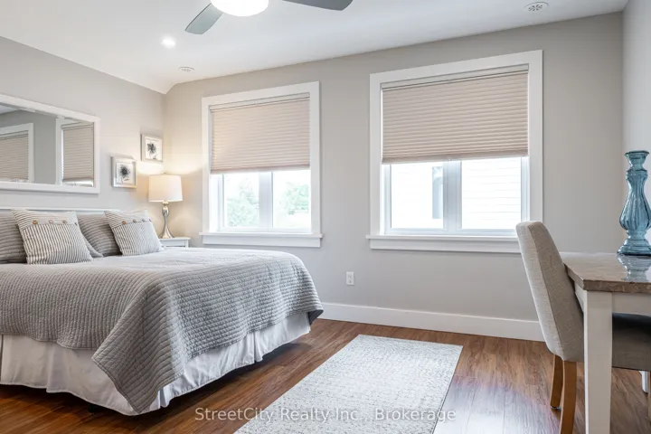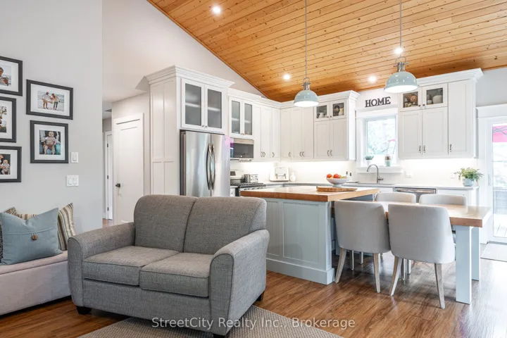 +"PublicRemarks": "Discover tranquility in this charming lakeside community. Just steps away from Lake Huron's shores, this lake house offers private beach access for sun-soaked days and stunning sunsets. Minutes north of Grand Bend, built in 2018, this 1500sq ft 2-bedroom 2-bath property offers high end finishes and meticulously kept grounds. The interior of this home boasts an open concept living area & quartz kitchen w/ soaring cathedral ceilings, ample cabinet space and massive 2 tier island for family and guests to gather around. Main floor bedroom & gorgeous 4 pc bath w/ walk in shower & soaker tub. The upper level features a Primary bedroom w/ 4 pc washroom. Insulated & heated garage has been converted to a 3rd bedroom/games room/media room and is used year-round by the current owner. Main floor laundry w/ custom cabinetry. On demand water heater, furnace, air exchanger and central air, gas generator. The exterior of this home features an expansive beautiful fully covered front porch and side entrance, double concrete driveway, outdoor shower, ample deck with built-in cantilevered umbrella, 2 storage sheds and accessory parking in rear. All located on a private street with no through traffic a few steps from the private beaches. Call for more information or to schedule a private showing."