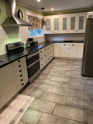 +"PublicRemarks": "Fully renovated large L shaped kitchen with an eat in island with stools and has a wood fireplace with glass door. All the appliances are included with a modern range hood with built-in dishwasher. Large dining room with table and chairs with a hutch included plus a patio door to a 11 x 19 privacy deck out showing the fenced yard. The living room has a wood fireplace with glass doors that is WETT certified. Master bedroom has a built in king bed included with a 3 pc bathroom and a shower plus off the bedroom is a large laundry room with built in cupboards and shelves for folding your clothes. Two more ample bedrooms and a 4 pc bathroom on the main floor. Off the kitchen is an exit outside to the garage plus stairs to the basement. The finished basement has a Theatre room 12 by 26 plus an airtight woodstove WETT certified and a walkout entry out to the covered room that is included from the elements but can see out to the property. A large bedroom in the basement is 13 by 24 plus a bonus room or closet 9 by 13. The basement has a 3 pc bathroom and a furnace room and a utility area with a hot water tank (owned) and a UV light and a water softener on the purified water system. Outside is a standby Generic generator that can operate the whole house should the hydro go out. The back yard is fenced for pets or children and 3 sheds and one of them has doors to allow snowmobiles or AWD vehicles to go right through the shed. The front yard has lots of landscaping with a 14 by 16 concrete deck and access to the 13 by 21 single garage. Double paved driveway that is large enough to park 10 cars. A large truck or trailer can easily be parked. This area is a nice neighbourhood with mail delivery and and a school bus for children. There is a beach away only 5 minute walk and snowmobile trails access close by. High speed fiber internet is available and good highway access."