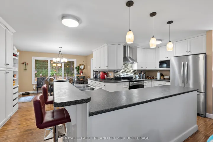 +"PublicRemarks": "Unique Residential & Commercial Opportunity in desirable Port Franks! Welcome to this beautifully maintained and updated bungalow nestled in the charming lakeside community of Port Franks. Situated on a quiet treed lot, this property offers incredible potential for homeowners, investors, business owners or a combination to suit any buyer. The spacious main home features a bright and airy open-concept layout boasting a large kitchen loaded with storage, stainless steel appliances and wrap around island with two-tier breakfast bar; 2 bedrooms and 2 full bathrooms including primary suite with walk in closet and spa-like ensuite; living room with laminate flooring; dinette with direct access to the backyard; main floor laundry; and office space with built-in shelving. Enjoy your morning coffee and the sounds of nature in the private treed backyard or on the generous front deck. A large detached garage/workshop has 200amp service, 2-piece bathroom, and sink with counter and shelving providing ample space for hobbies, storage, parking or entrepreneurial use. At the rear of the property, you'll find a two-storey dwelling with two self-contained, and fully furnished apartment units with shared laundry hook-up, including main floor one bedroom unit and upper unit with two bedrooms plus den, kitchen with dishwasher hook-up, along with private deck - ideal for rental income or visits with extended family. Whether you're looking for a peaceful home base, an income-generating property, or a unique business opportunity, this one-of-a-kind property offers endless possibilities in a sought-after location near beaches, trails, and amenities. Dwellings are all well insulated, 2 operate. septic (apartment & shop share one). Updates include: Furnace and A/C 12 yrs, metal roof 10 yrs, shop metal roof 6 yrs, windows and exterior doors 13 yrs, kitchen 13 yrs, main bath 12 yrs, ensuite 7yrs, extension on rear of home 13 yrs, soffit and fascia 13 yrs, gazebo 3yrs (all ages are approximate)."