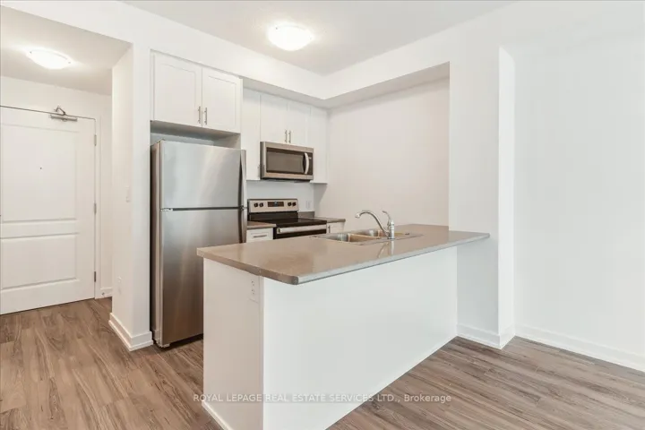 +"PublicRemarks": "Welcome to this beautiful, bright & sunny, 1 bedroom + DEN unit providing the ultimate blend of comfort and convenience. Enjoy CARPET-FREE living with plank vinyl flooring throughout, offering consistency and flow between rooms. As you step inside, you'll be greeted by an abundance of natural light streaming through the open-concept layout. The white kitchen features stainless-steel appliances and a breakfast bar with overhead pendant lighting, providing a bright and modern feeling which extends into the living room. The open concept design of the space allows for seamless interaction and entertaining. Off the living room, you can sit and enjoy a drink on your private balcony, allowing you to soak up some fresh air and sunshine. Relaxation awaits in the spacious primary bedroom with floor-to-ceiling windows offering a serene retreat after a long day. The den provides additional space, perfect for a home office or hobby area. The in-suite washer and dryer add to the convenience of this unit. Includes 1 underground parking spot and 1 locker, which is located on the same level as the unit! The location of this condo is truly unbeatable! Situated near quaint downtown Waterdown, you'll have easy access to an array of shops, restaurants, and amenities, ensuring all your daily needs are just moments away. Close to Aldershot GO Train, schools, parks and trails. Enjoy all of the fabulous amenities this building has to offer including party room, fitness facilities, rooftop patio with BBQ and bike storage. Don't miss the chance to start a new chapter in Waterdown's thriving community."