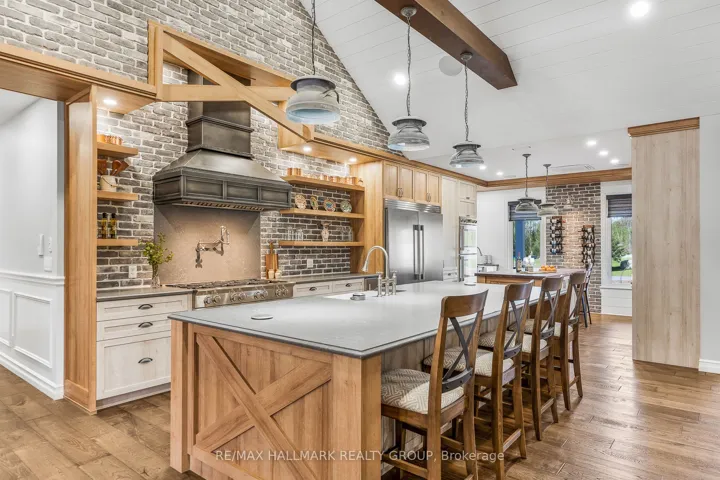 +"PublicRemarks": "A Modern Farmhouse Masterpiece Domaine La Seigneurie, LOrignal Welcome to your forever home where modern luxury meets farmhouse charm. Nestled in the prestigious Domaine La Seigneurie, this residence was designed to impress from every angle, with top-of-the-line finishes and warm inviting spaces that will make you fall in love the moment you step inside.Strategically located only 1 hour from Montreal, Ottawa, and Mont-Tremblant, youll enjoy the best of all worlds peaceful countryside living with quick access to the city, skiing, dining, and entertainment.Property Features:Style: Modern farmhouse bungalow with loft Garage: Oversized 3-car garage with wood-style doors Bedrooms: 3+1 spacious bedrooms Bathrooms: 3 full bathrooms + 1 powder room Living Area: Approx. 3,700 sq. ft. of refined comfort Lot: Expansive landscaped grounds in an exclusive community Interior Highlights:A grand open-concept living area with soaring cathedral ceilings, wood beams, and a statement brick fireplace perfect for cozy evenings or elegant entertaining.A dream chefs kitchen featuring premium appliances, a massive island, and custom cabinetry built to host unforgettable gatherings.Spa-inspired bathrooms with freestanding tubs, rain showers, and double vanities designed for pure relaxation.A luxurious primary suite with walk-in closet and ensuite that feels like your private retreat.Practicality meets beauty with a mudroom and laundry room complete with built-ins and abundant storage.Exterior & Lifestyle:A covered outdoor kitchen & entertainment space with granite counters and built-in appliances your own backyard paradise for family barbecues and evenings under the stars.Charming front porch perfect for morning coffee or evening sunsets.Large paved driveway with plenty of parking for guests.A serene setting in Domaine La Seigneurie, combining privacy, elegance, and proximity to all amenitie"