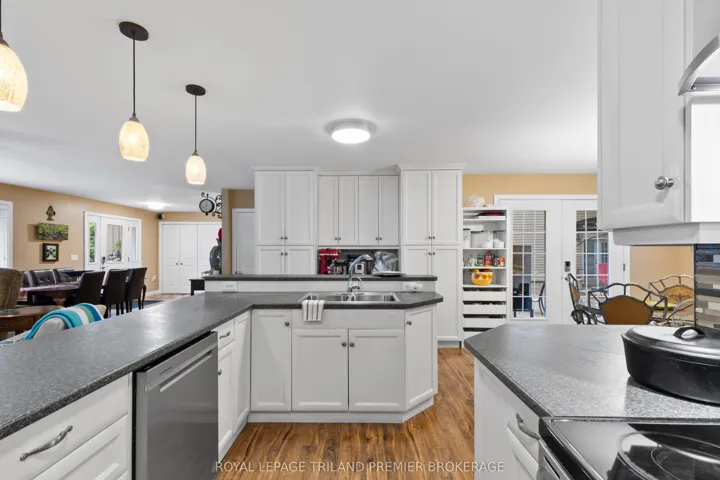 +"PublicRemarks": "Unique Residential & Commercial Opportunity in desirable Port Franks! Welcome to this beautifully maintained and updated bungalow nestled in the charming lakeside community of Port Franks. Situated on a quiet treed lot, this property offers incredible potential for homeowners, investors, business owners or a combination to suit any buyer. The spacious main home features a bright and airy open-concept layout boasting a large kitchen loaded with storage, stainless steel appliances and wrap around island with two-tier breakfast bar; 2 bedrooms and 2 full bathrooms including primary suite with walk in closet and spa-like ensuite; living room with laminate flooring; dinette with direct access to the backyard; main floor laundry; and office space with built-in shelving. Enjoy your morning coffee and the sounds of nature in the private treed backyard or on the generous front deck. A large detached garage/workshop has 200amp service, 2-piece bathroom, and sink with counter and shelving providing ample space for hobbies, storage, parking or entrepreneurial use. At the rear of the property, you'll find a two-storey dwelling with two self-contained, and fully furnished apartment units with shared laundry hook-up, including main floor one bedroom unit and upper unit with two bedrooms plus den, kitchen with dishwasher hook-up, along with private deck - ideal for rental income or visits with extended family. Whether you're looking for a peaceful home base, an income-generating property, or a unique business opportunity, this one-of-a-kind property offers endless possibilities in a sought-after location near beaches, trails, and amenities. Dwellings are all well insulated, 2 operate. septic (apartment & shop share one). Updates include: Furnace and A/C 12 yrs, metal roof 10 yrs, shop metal roof 6 yrs, windows and exterior doors 13 yrs, kitchen 13 yrs, main bath 12 yrs, ensuite 7yrs, extension on rear of home 13 yrs, soffit and fascia 13 yrs, gazebo 3yrs (all ages are approximate)."