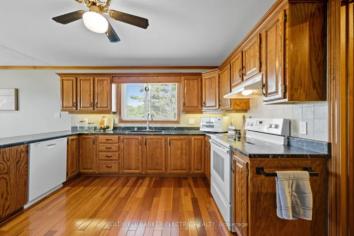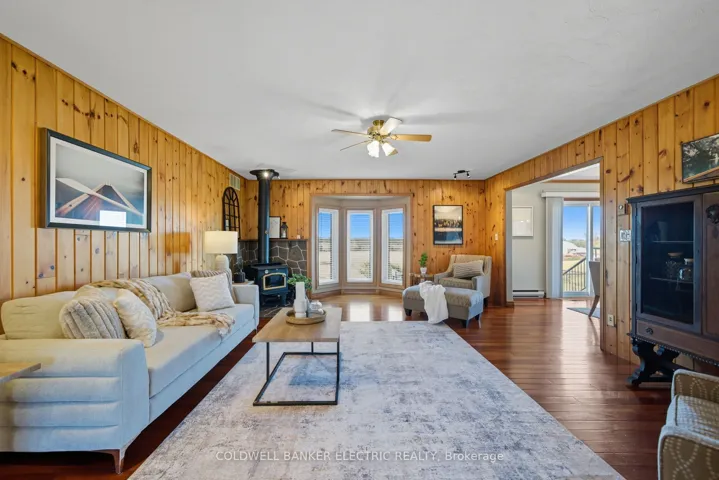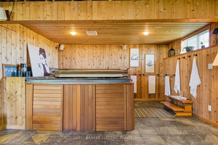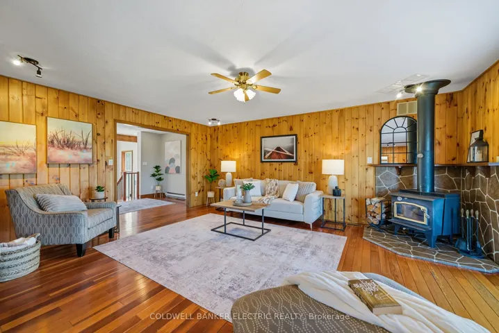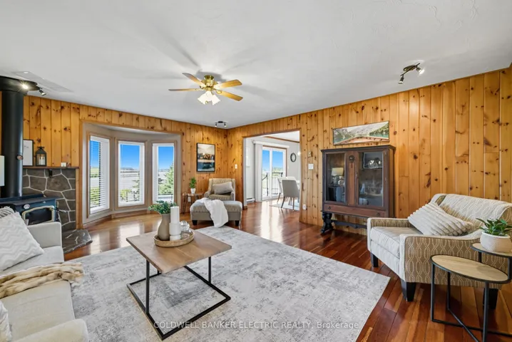 +"PublicRemarks": "Enjoy cottage vibes without the cottage bills! This raised bungalow on Serpent Mounds Road offers a perfect balance of comfort, charm and practicality. With 3 + 2 bedrooms and 4 baths, you're getting dramatic rural panoramas and even glimpses of Rice Lake and just a minute (yes, I timed it) to the boat launch. Best part: no waterfront taxes, just pure lakeside joy. Step inside through a grand entry to the main floor, where gleaming Brazilian cherry wood floors shine. An oversized living room warmed by a wood stove features a heating redistribution system that sends cozy heat throughout the main floor, keeping you comfortable no matter where you are. The kitchen is both functional and generous: tons of cabinetry, a walk-in pantry, laundry room, plus direct access to the garage. The dining area leads out to a newer back deck (glass railings) overlooking a pool (liner replaced in 2025). Downstairs, the lower level is your custom-built chill zone: large family room with a stone gas fireplace, built-in hot tub for year-round relaxation, and two flexible rooms for bedrooms, office, hobby your choice. Outside, the fun continues: above-ground pool, fire pit, horseshoe pit, and wide open yard space for summer games or moonlit gatherings. The elevated lot gives you full 360-degree views, gorgeous sunsets, real wow moments. Location? Spot on. Close to Peterborough. Within walking reach of Keenes offerings: restaurant, pharmacy, LCBO / general store, library, school, medical centre, community centre with year-round events. Privacy, space and entertaining under one roof. A rare find near Rice Lake."
