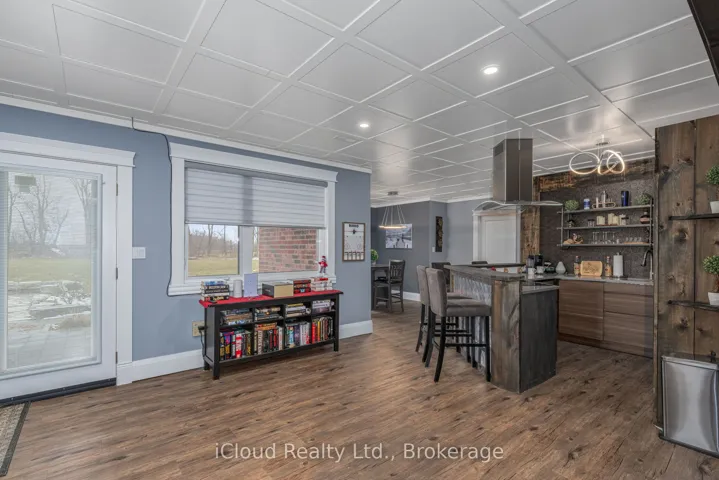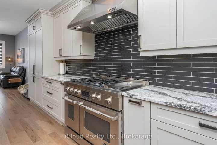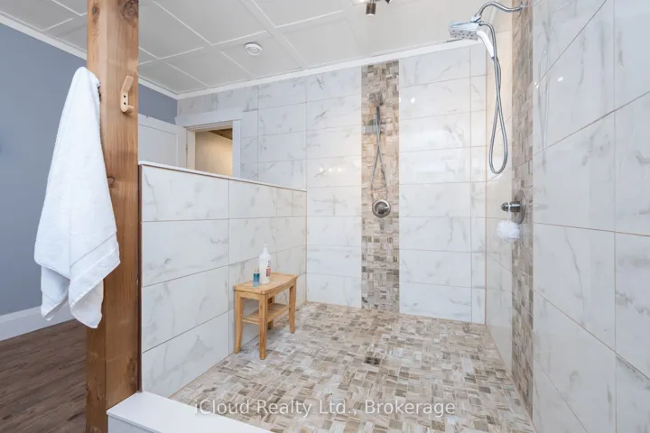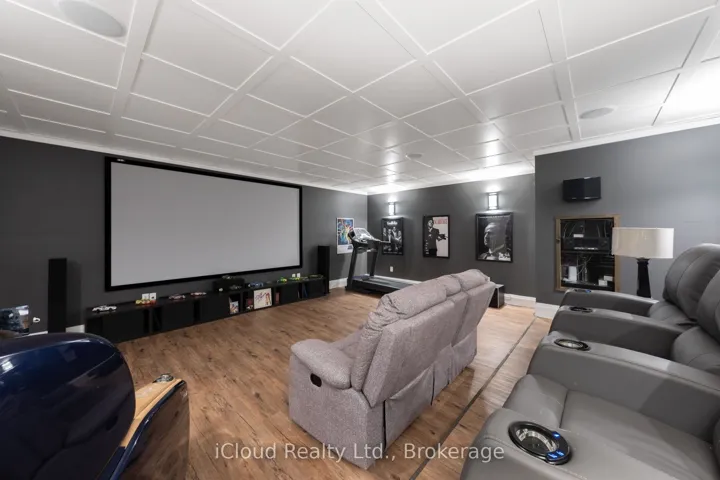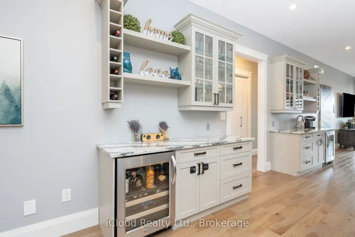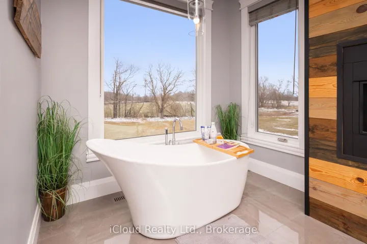 +"PublicRemarks": "This extraordinary 5-bedroom, 5-bathroom custom-built bungalow offers over 5,000 sq ft of beautifully finished living space on 9 peaceful, tree-lined acres in sought-after Erin. A perfect blend of luxury and functionality, the home features hardwood flooring throughout the main level and a chefs dream kitchen with a large quartz island, top-of-the-line appliances, and a two-way fireplace connecting to the inviting living room. A walkout from the living room leads to a covered deck overlooking the stunning property ideal for entertaining or quiet evenings in nature. The primary suite is a true retreat, featuring a spa-inspired ensuite with a spacious 6x6 open-framed shower, freestanding tub warmed by a gas fireplace, and elegant finishes. Two additional main floor bedrooms each offer 4-piece ensuites and double closets, providing comfort and privacy for family or guests. The fully finished walk-out basement boasts a spacious layout with heated floors, a second kitchen, games area, cozy great room with gas fireplace, dedicated theatre room with Dolby Atmos 9.1 surround sound, one bedroom currently used as a home gym, and a second bedroom with a semi-ensuite featuring another 6x6 open-framed shower. Step outside to a private patio with gazebo, hot tub and built-in fire nook perfect for relaxation. Additional highlights include a heated garage with epoxy flooring, whole-home 22k W automatic generator, reverse osmosis water treatment system, and scenic pond separating two 4+ acre parcels each with its own driveway and natural gas hookup. Previously approved for a second building (with septic and well), this property offers luxury, flexibility, potential future development, and country charm in one unmatched package."