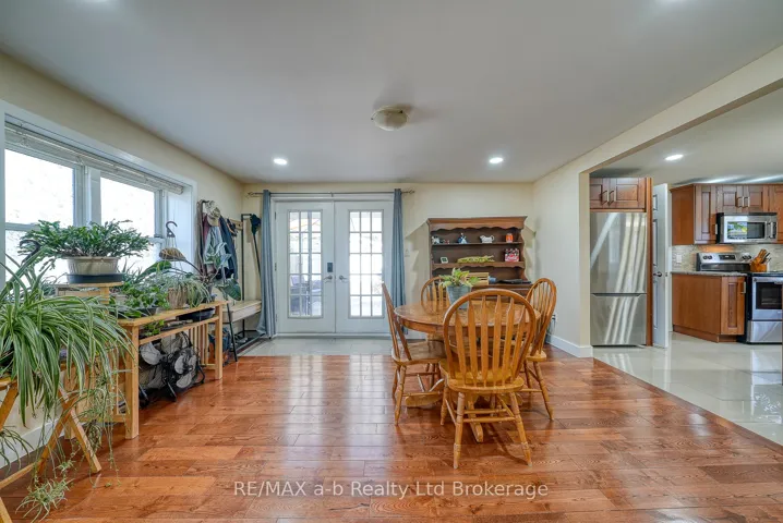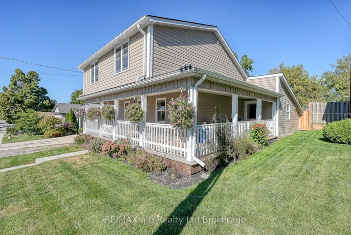 +"PublicRemarks": "CHARM!!! This 1875 two storey century home features a covered wrap around front porch. The perfect spot for sipping a coffee or watching a storm. A large, private, backyard also offers great escape for relaxing or entertaining. Back deck with gazebo, well maintained gardens and yard, and a detached 1.5 car garage. Fully fenced and plenty of parking (5 vehicles). Windows and roof replaced within the last 7 years. Furnace 10 years. Hydro is 100 AMP breakers. Hot water heater is owned, and there are no rental items. This home has been lovingly maintained, hardwood, tile and pot lights on main floor. Large L shaped living room can double for various uses, open concept to dining room (large patio doors to backyard) and functional kitchen with ample cabinetry, island, granite countertops, and under cabinetry dimmable lighting. Laundry/storage and four-piece bathroom also on the main floor. Upstairs, there are three bedrooms (cable run to every room) and a three-piece bathroom. Basement is dry and great for additional storage. This home is ready for its next owner to enjoy throughout the years."