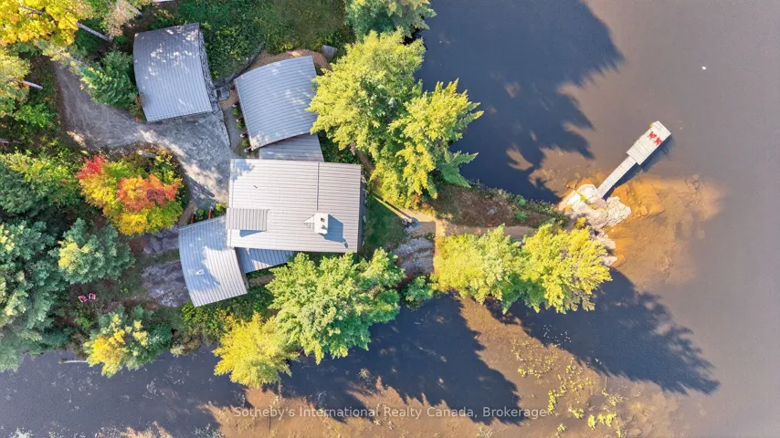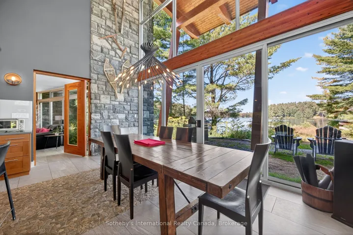 +"PublicRemarks": "Welcome to "Serenity," an architect-designed, turn-key, four-season retreat on the crystal waters of Otter Lake. This extraordinary property rests on an 11.93-acre point with 1,771 ft of natural shoreline, offering unmatched privacy, breathtaking views, & a deep connection to Muskoka's rugged beauty, all just 10 mins from Huntsville's amenities. Approach via a winding granite lane that opens to the entrance courtyard, where the home's sweeping rooflines, hand-cut granite, & walls of glass reveal glimpses of the lake & Serenity Bay. Inside, the soaring 25-ft great room makes a dramatic impression with floor-to-ceiling windows, a granite Rumford fireplace, & a wall of glass that opens to the lakeside terrace. The open-concept chef's kitchen, dining room, & great room are designed for effortless entertaining. The kitchen showcases a 12-ft Brazilian granite island, gas cooktop, & stainless steel appliances. Host unforgettable dinners surrounded by nature, with sliding doors that extend the living space to a covered terrace, perfect for lakeside dining, sunrise coffee, or fireside evenings under the stars. A separate family room provides a cozy retreat, ideal for games, TV, or curling up with a book, with sliding doors that invite the outdoors in year-round. The primary wing is a private sanctuary featuring a Scandinavian wood stove, walk-through closet, motorized blinds, & a spa-like ensuite with pebble wall & rain shower. Two additional lake-view bedrooms & a stylish 4-pc bath complete the west wing. Upstairs, a loft offers a fourth bedroom with an ensuite, overlooks the great room with sweeping lake views, & includes space for ping-pong or yoga. A cedar path leads to the shoreline, offering multiple seating areas, a steel fire pit set on the rock, a dock for swimming, diving, or tranquil paddles. Hear the call of the loon as it drifts across mirror-like waters, capturing the essence of a true Muskoka escape on this motor-free lake."