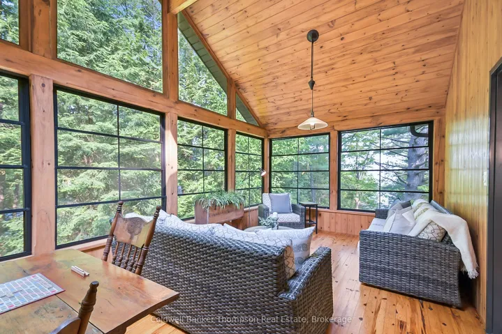 +"PublicRemarks": "This is your opportunity to own a piece of heaven on the crystal clear waters of Lake of Bays in the coveted south shore where generations have cherished this historic community. Tennis Club, Sailing Club, Bigwin Island fine dining & amazing golf, picture perfect panoramic lake views & stunning sunsets are all here waiting for you & your family! Enjoy over 3,000 sq.ft. of warm & inviting living space featuring 3 bedrooms, 3 baths & an open concept layout perfect for entertaining! The kitchen is a culinary dream providing lots of cupboards, SS appliances, breakfast bar & expansive windows. The living and dining room boast hardwood floors, cathedral ceilings plus floor to ceiling windows where you are immersed in nature. This space is anchored by a custom stone wood burning fireplace with pizza oven & built-in bench. The spacious Muskoka room is a great space to share stories, read a book or simply delight in the peaceful surroundings. Large primary suite is complemented by the spa-like 4-piece ensuite & walk-in closet. You will also find an office with built-in desk & shelving, main floor laundry plus a powder room off the welcoming foyer. Lower level offers a large recreation/media room complete with projector, built-in wine coolers, gas fireplace & walk-out. 2 guest bedrooms, 4 piece bath, marvelous sauna & steam shower, utility room & loads of storage on this level. Detached 2-car garage includes an incredible bonus room above with gas fireplace & 3 piece bathroom ~ ideal space for a games room or additional guest accommodations. The enchanting perennial gardens, patio & stone walk way add perfect harmony to this spectacular offering. Other features include a drilled well, full home generator, irrigation system, paved driveway & loads of parking. Great dock with storage, 101 feet of natural shoreline and undeniably spectacular lake vistas ~ come discover the peaceful ambiance of this Lake of Bays treasure!"